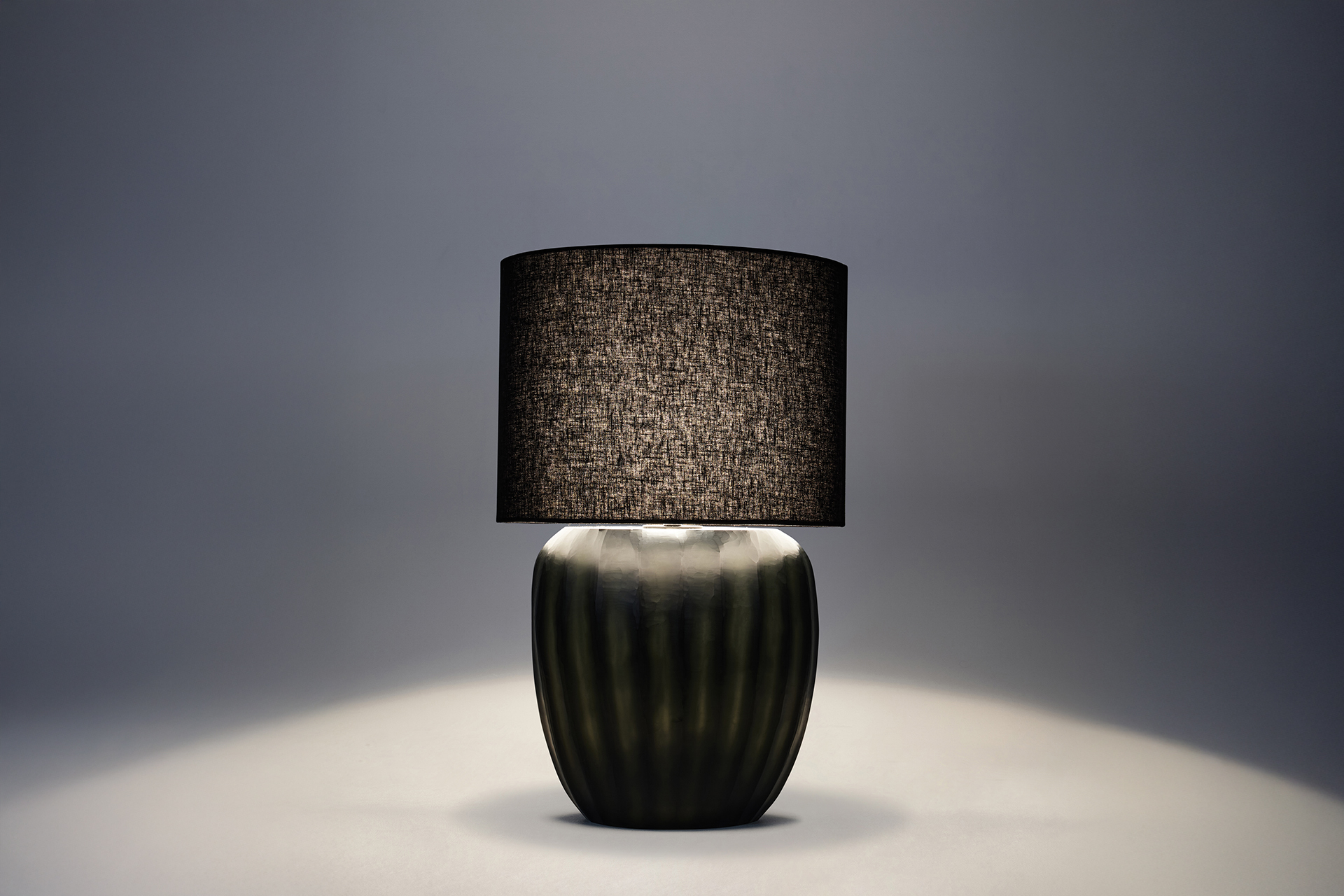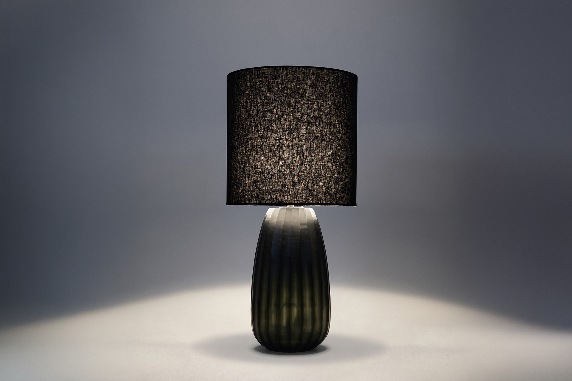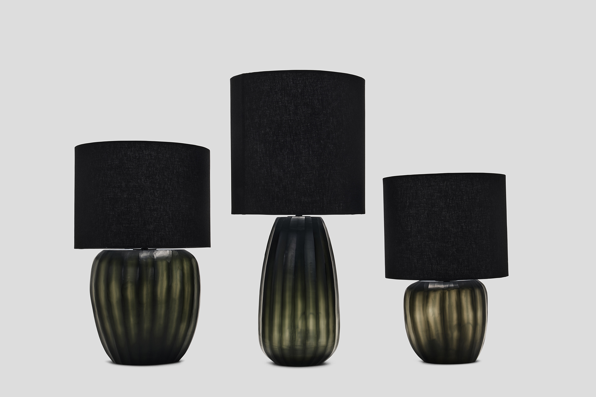 The Aura lamp series features a beautifully mouth-blown, organic shape with a hand-etched surface in a signature Moss green.