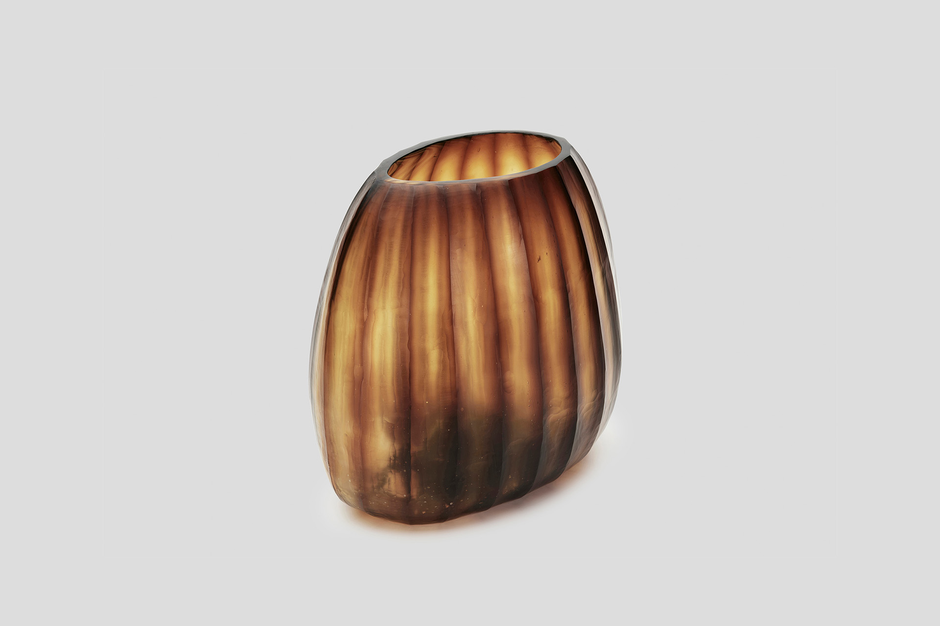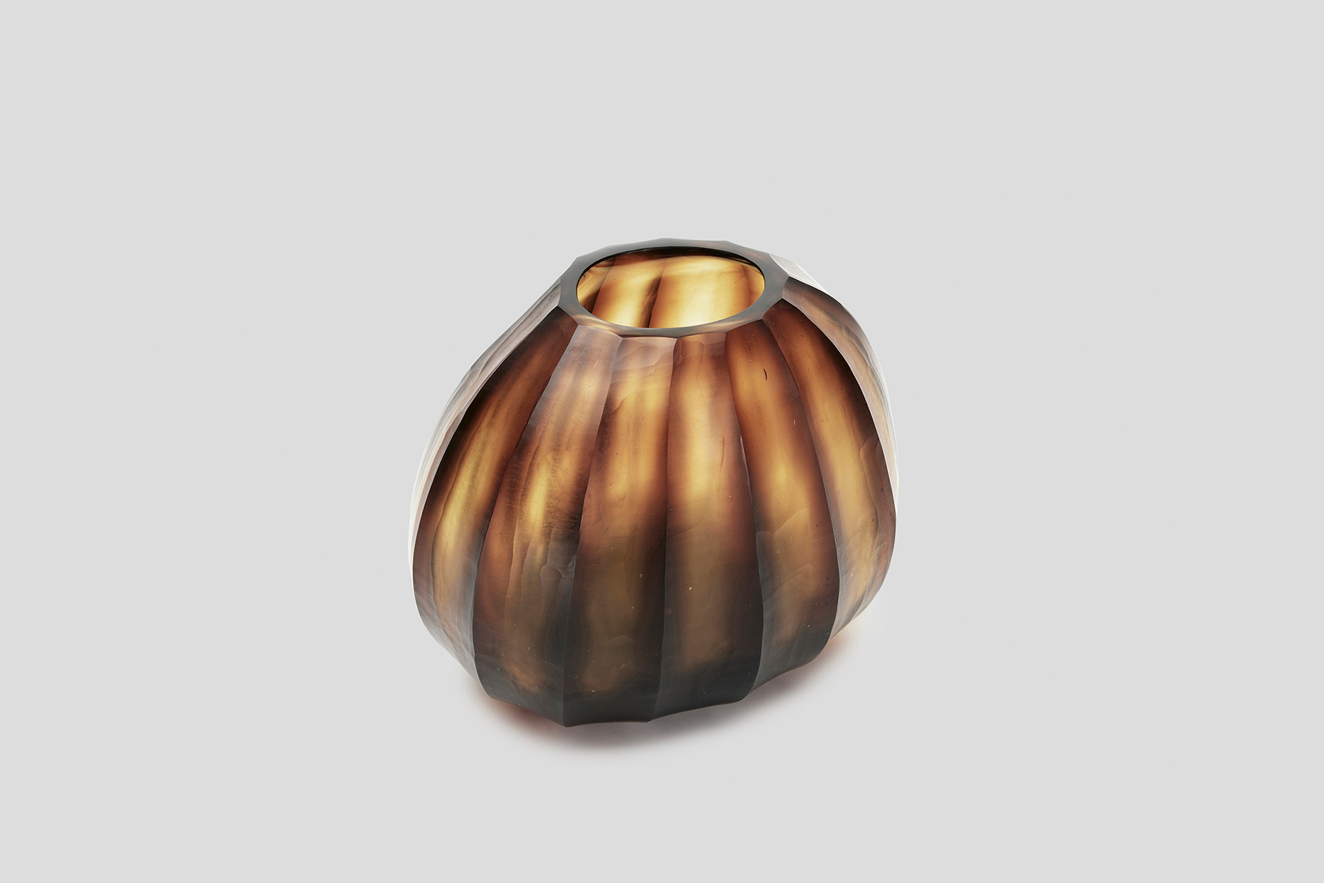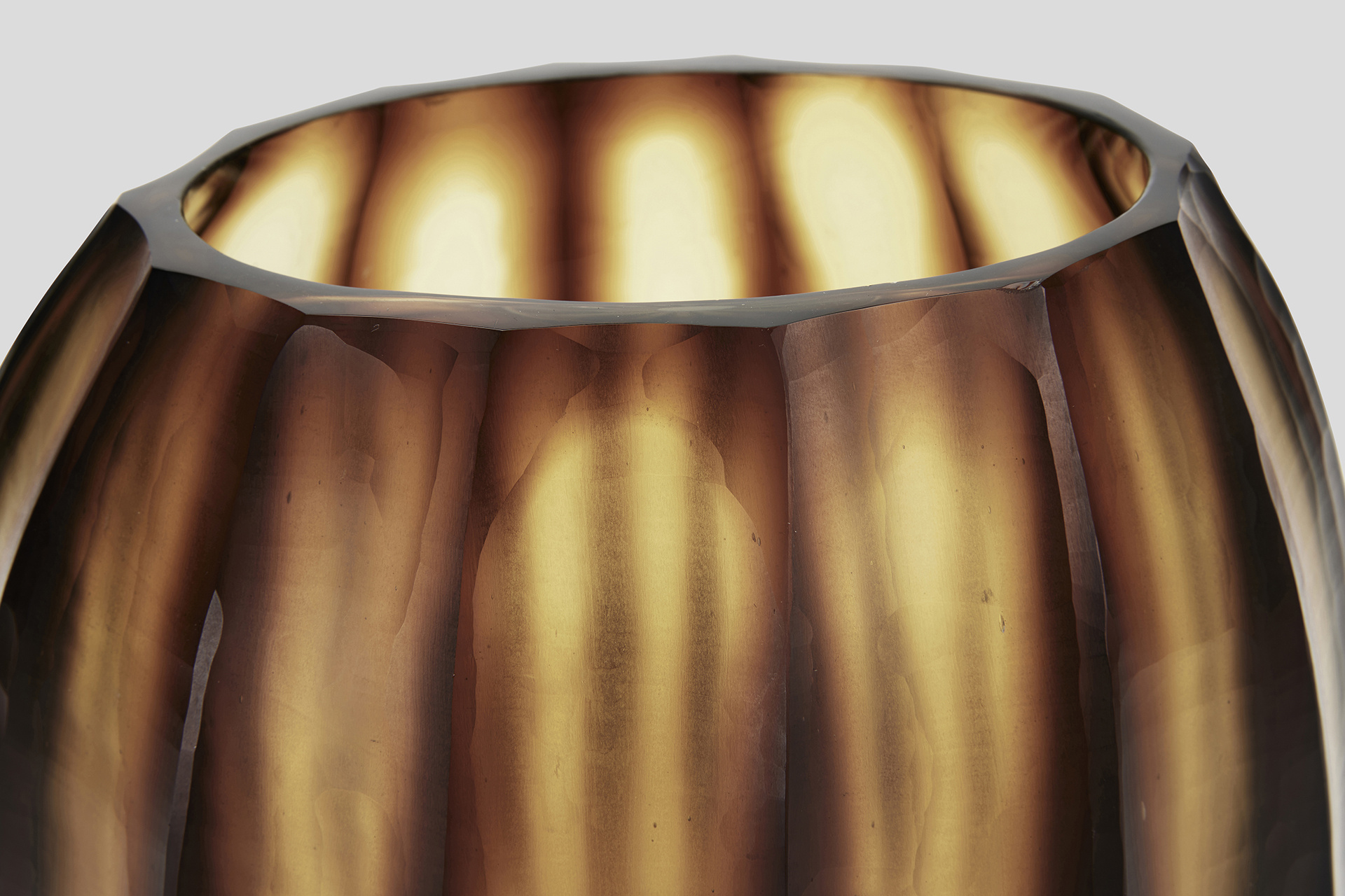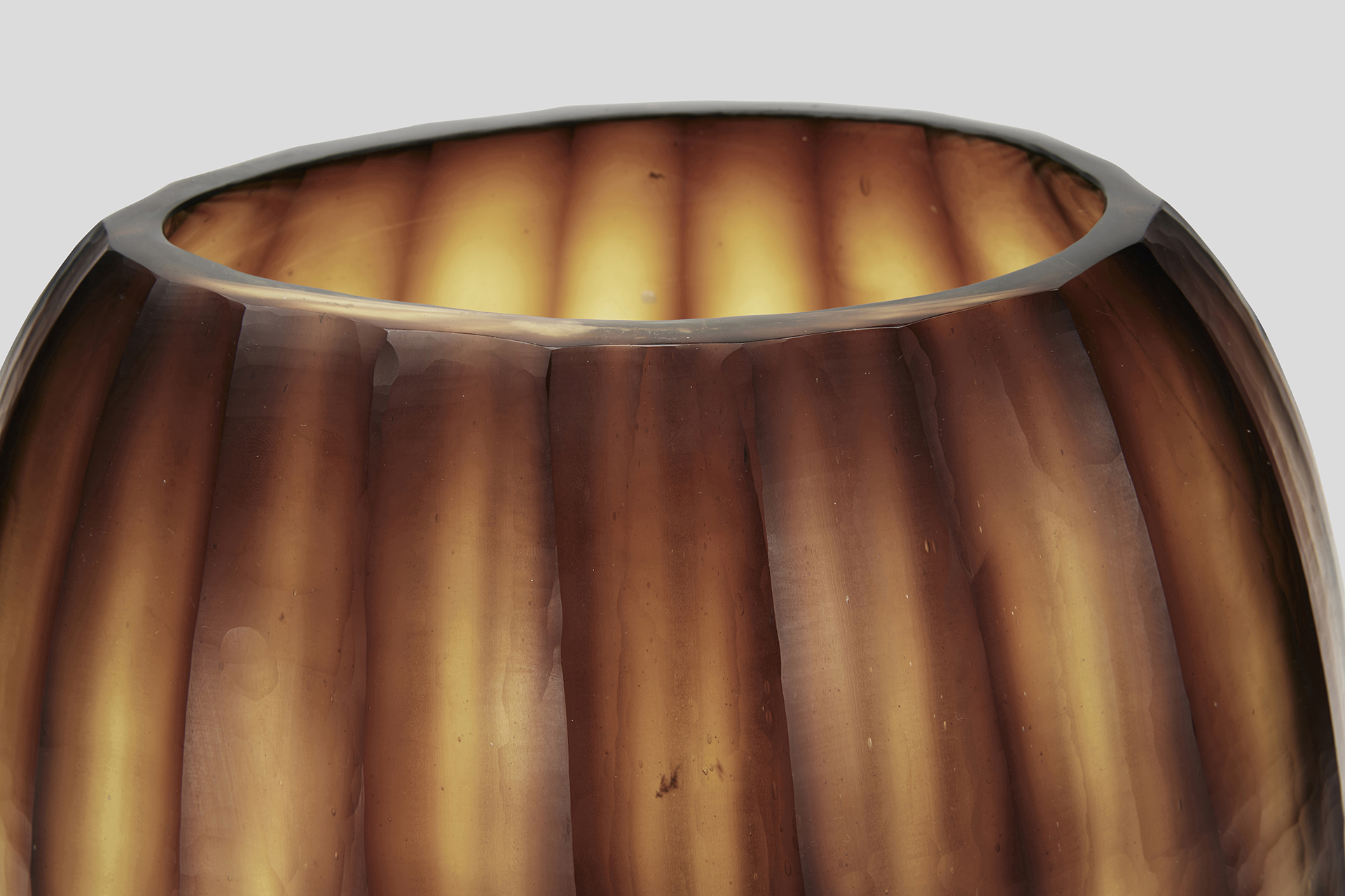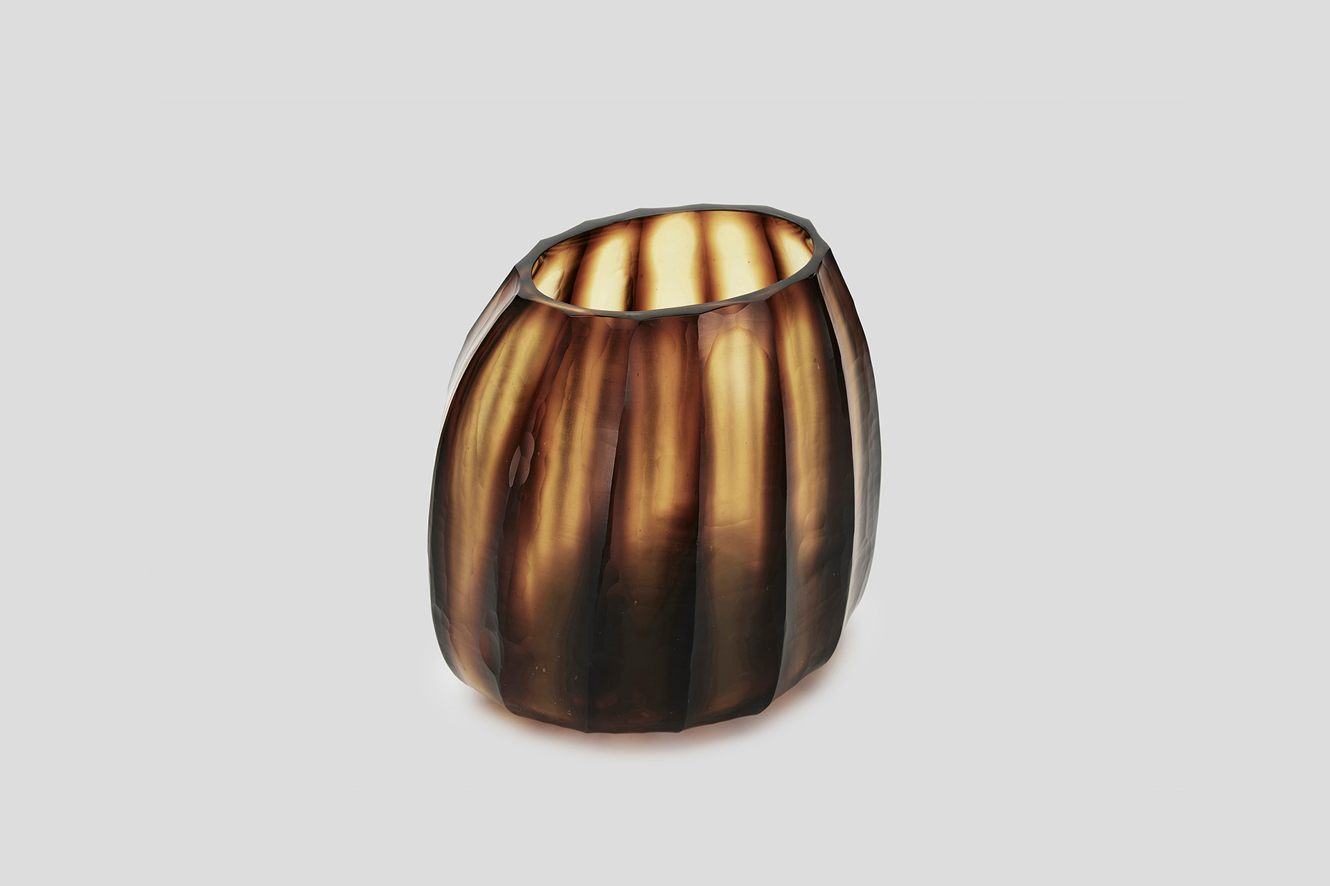 The Aura vase is mouth blown molten glass which is then hand carved to produce linear cuts making each piece totally unique.