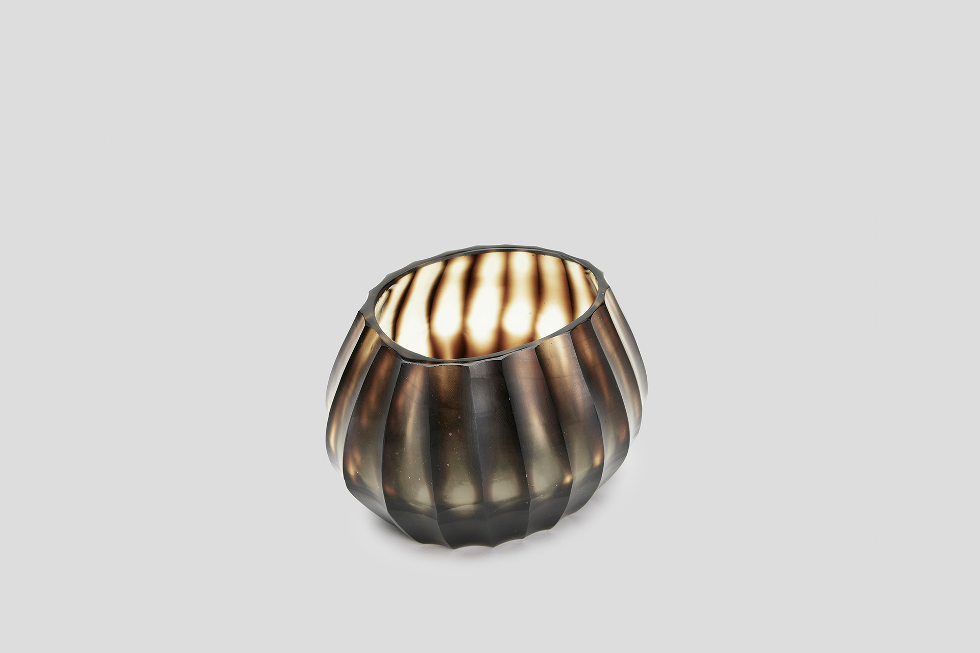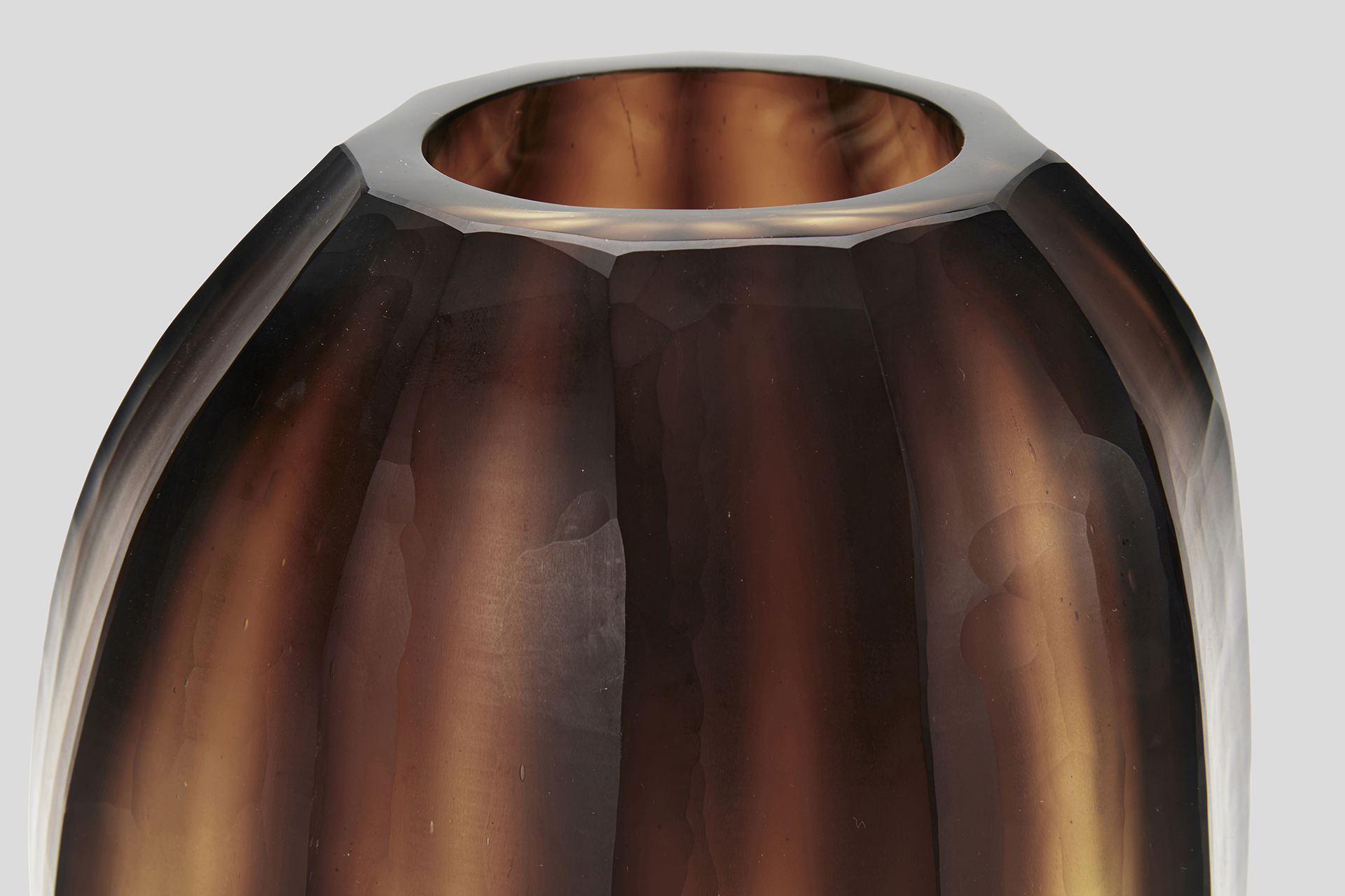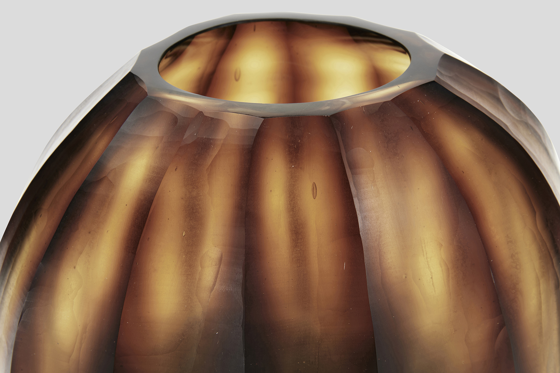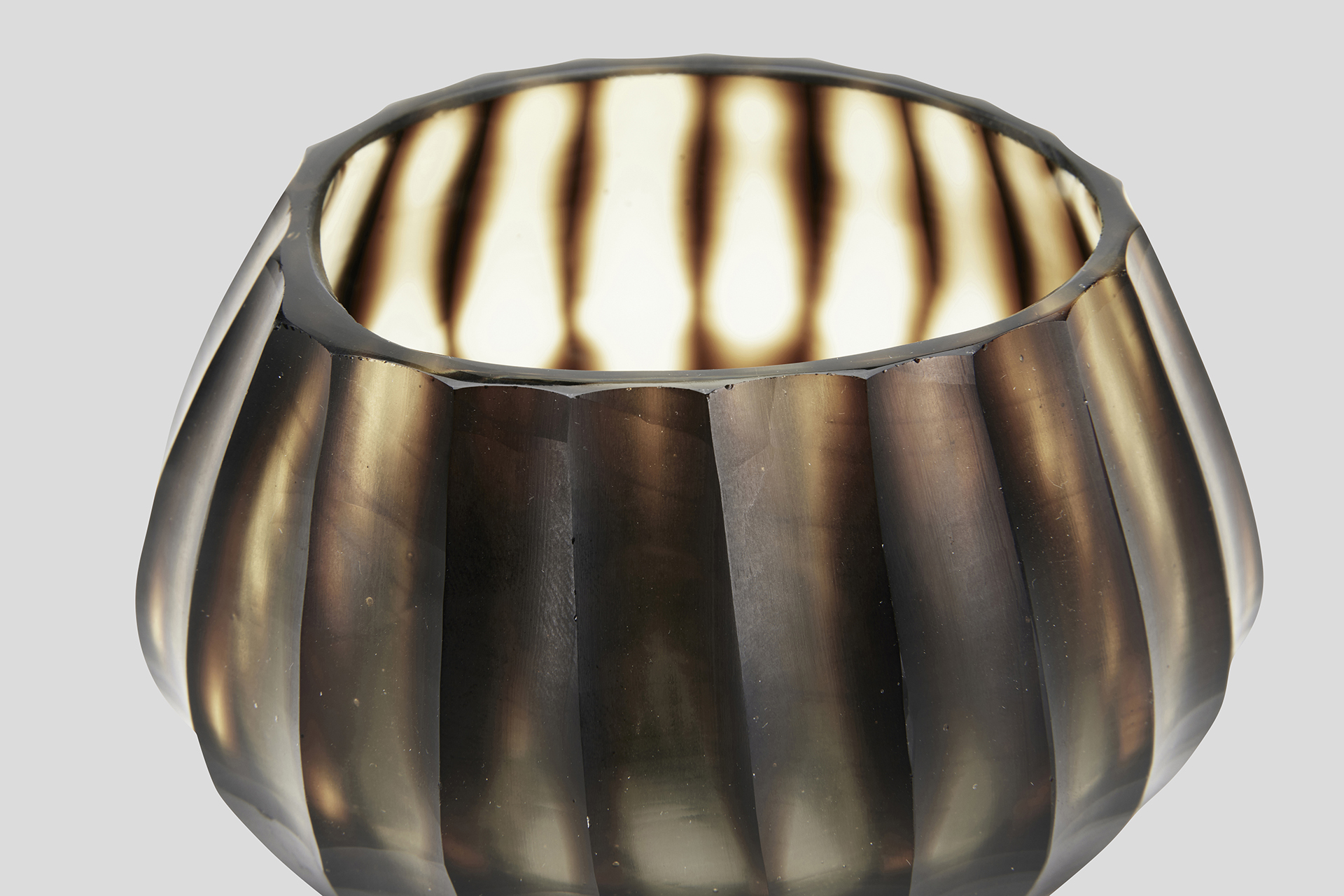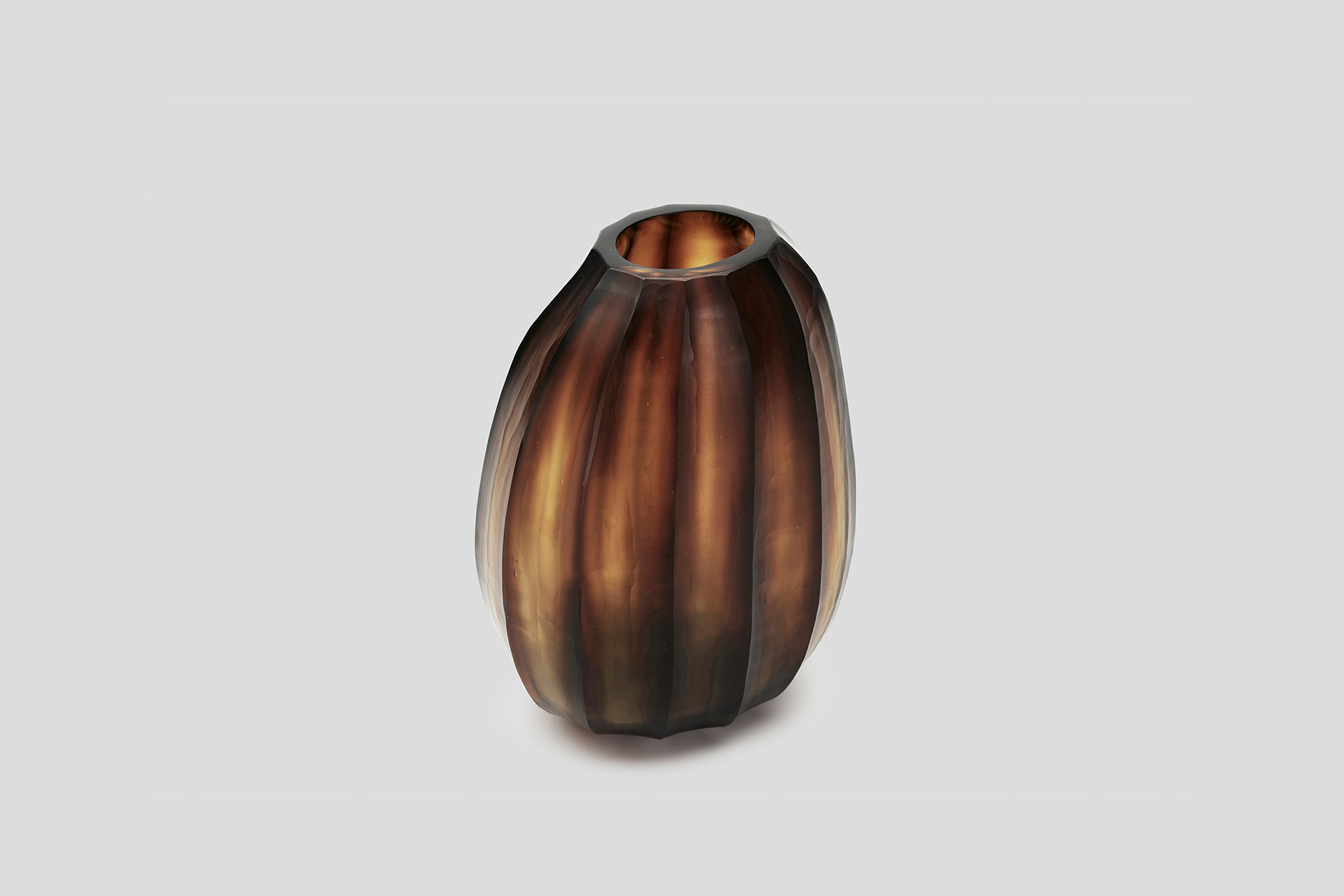 The Aura vase is mouth blown molten glass which is then hand carved to produce linear cuts making each piece totally unique.