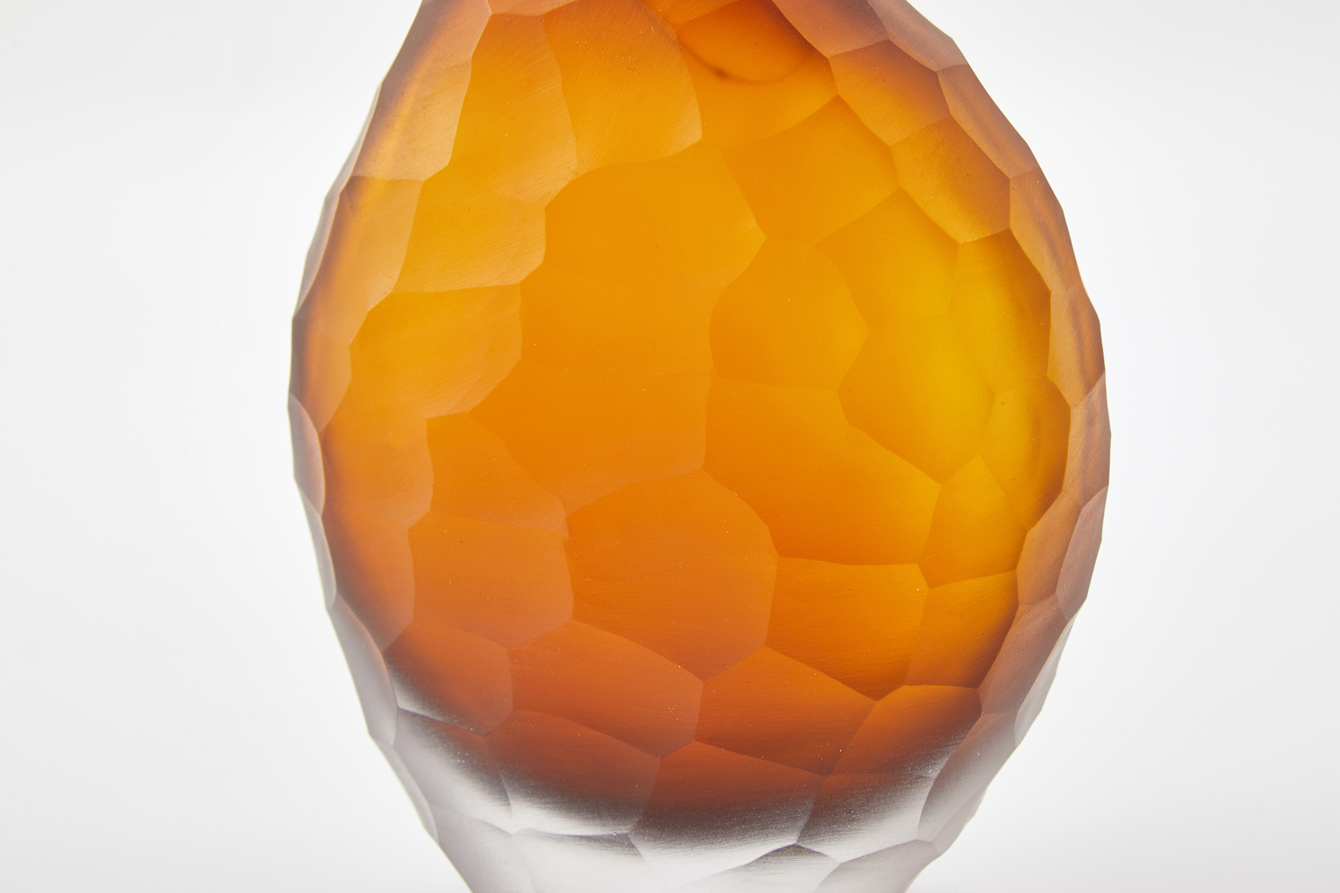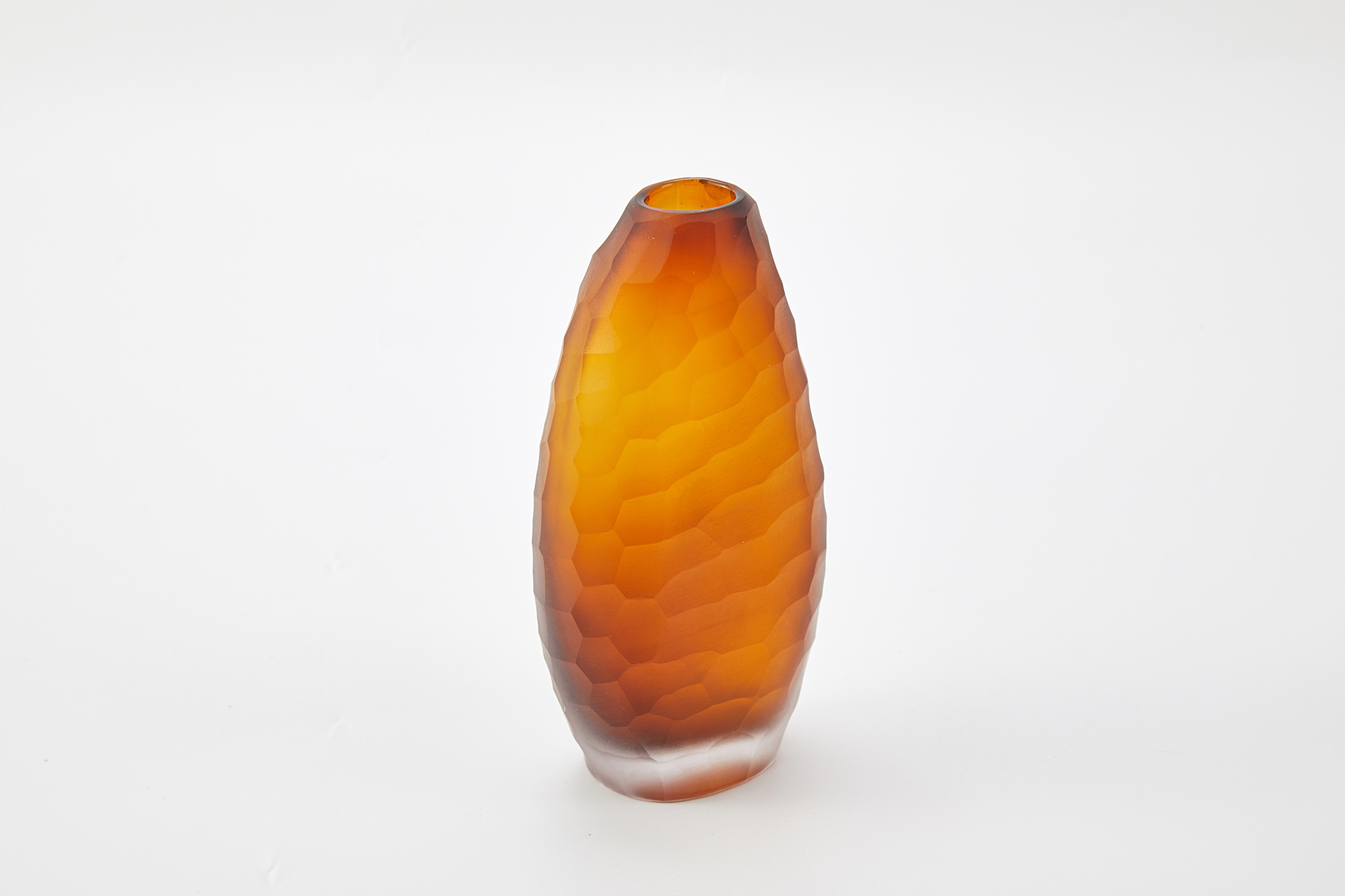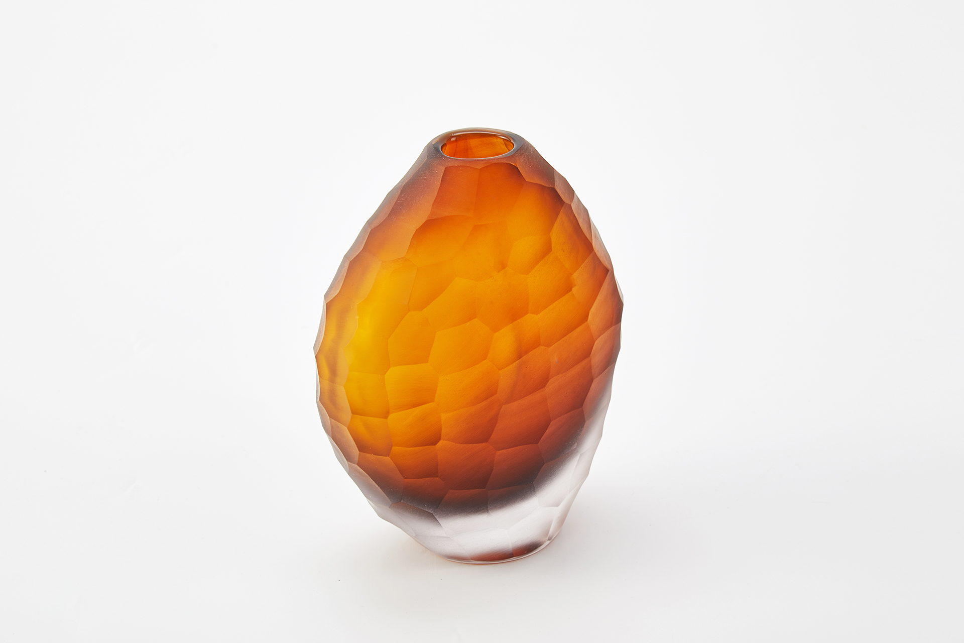 Handmade with etched glass, these vases feature soft, organic shapes to match their unique texture. Thick glass add depth and sturdiness to their soft forms.