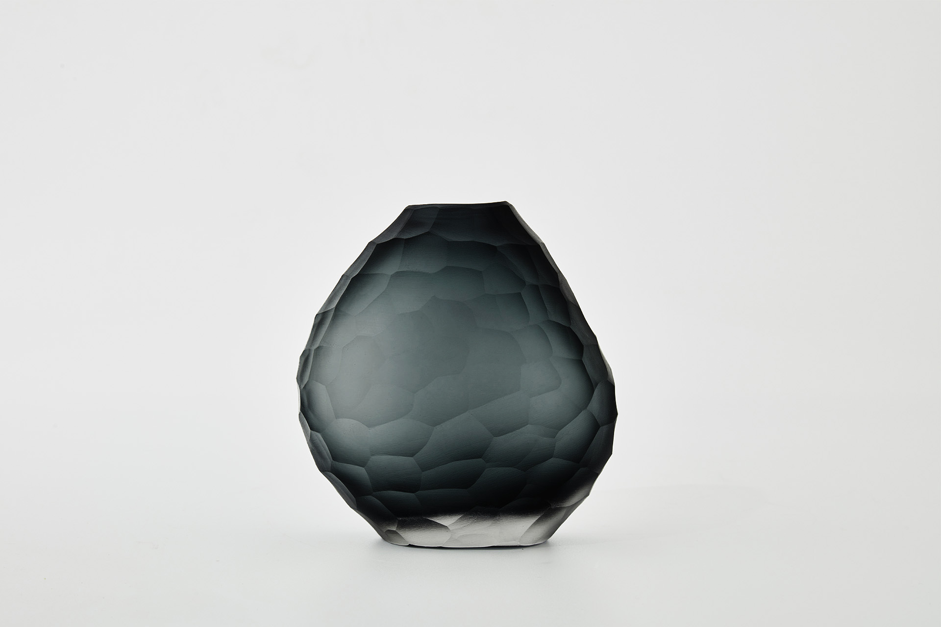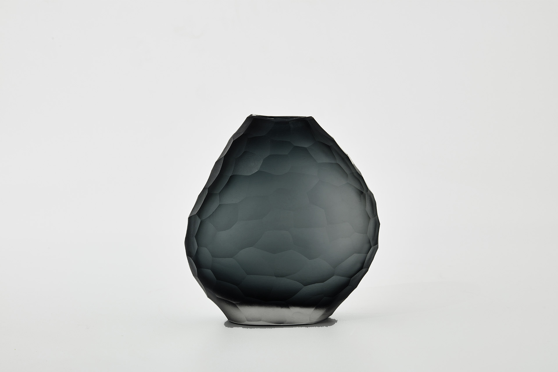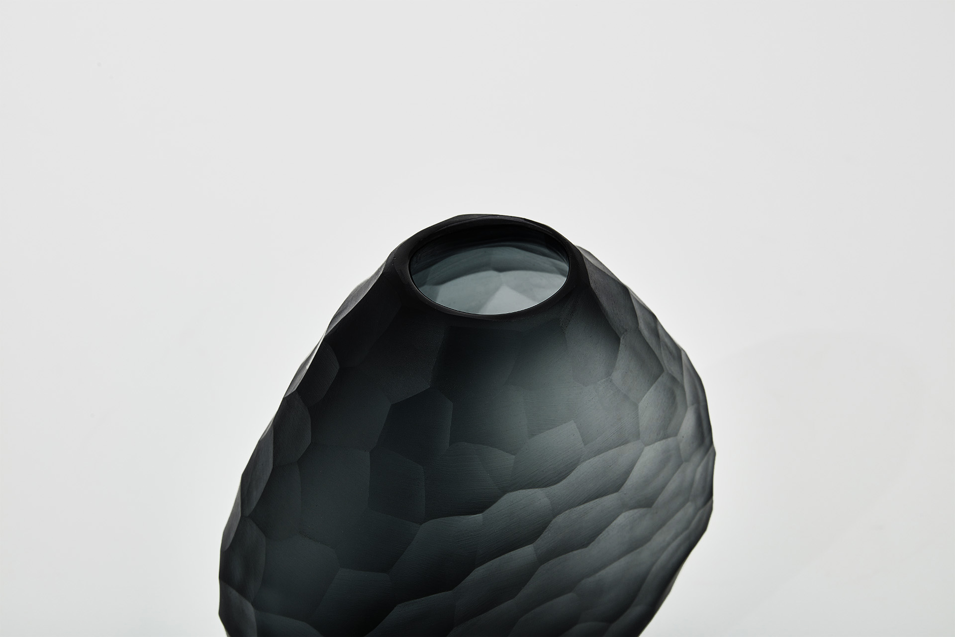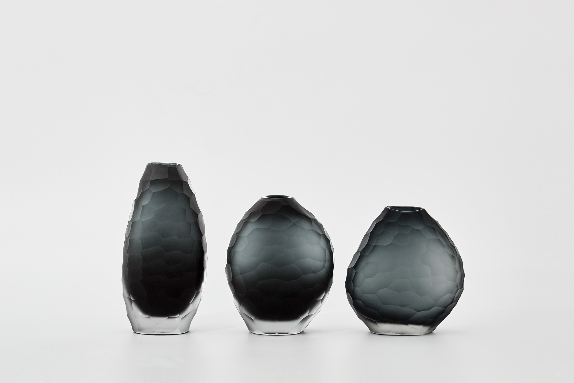 Handmade with etched glass, these vases feature soft, organic shapes to match their unique texture. Thick glass add depth and sturdiness to their soft forms.