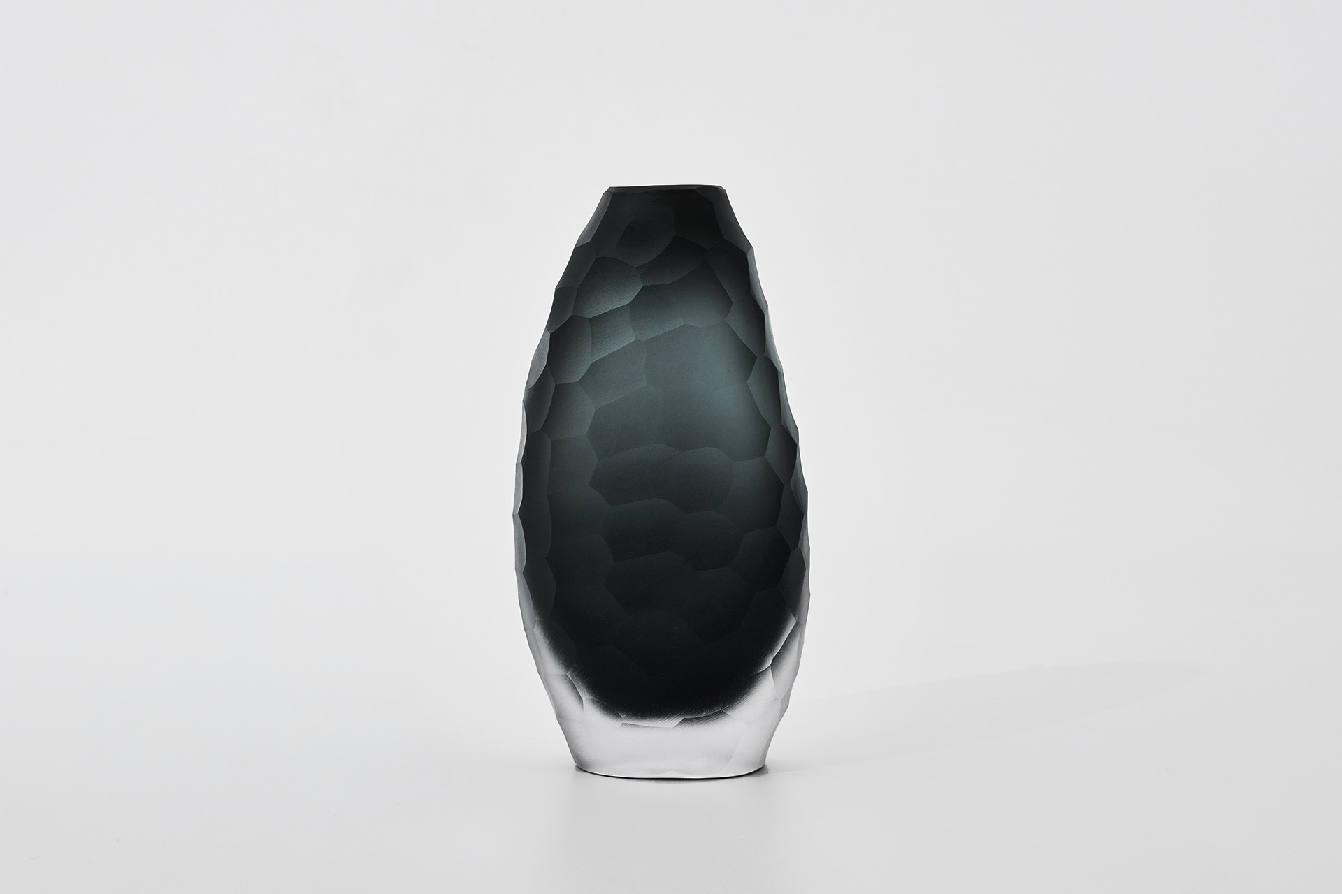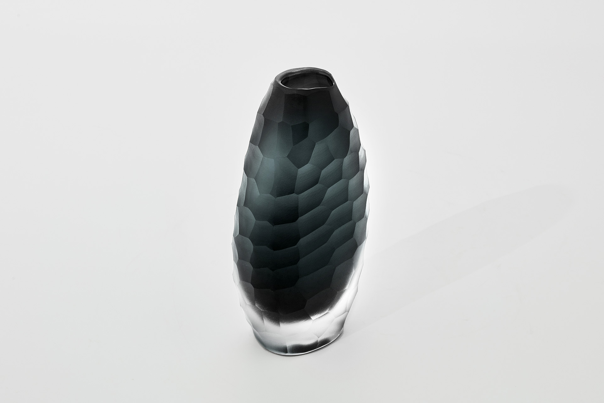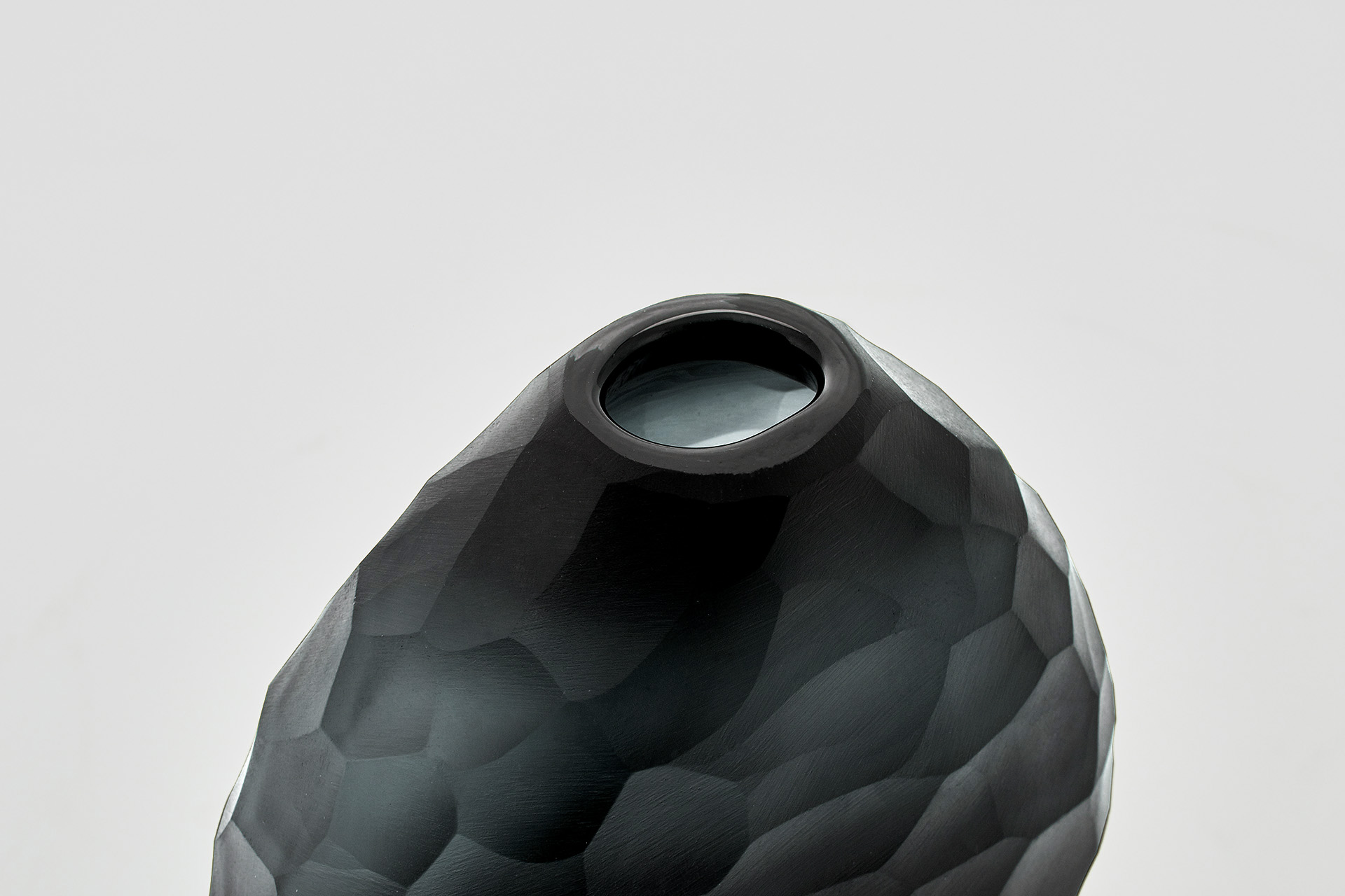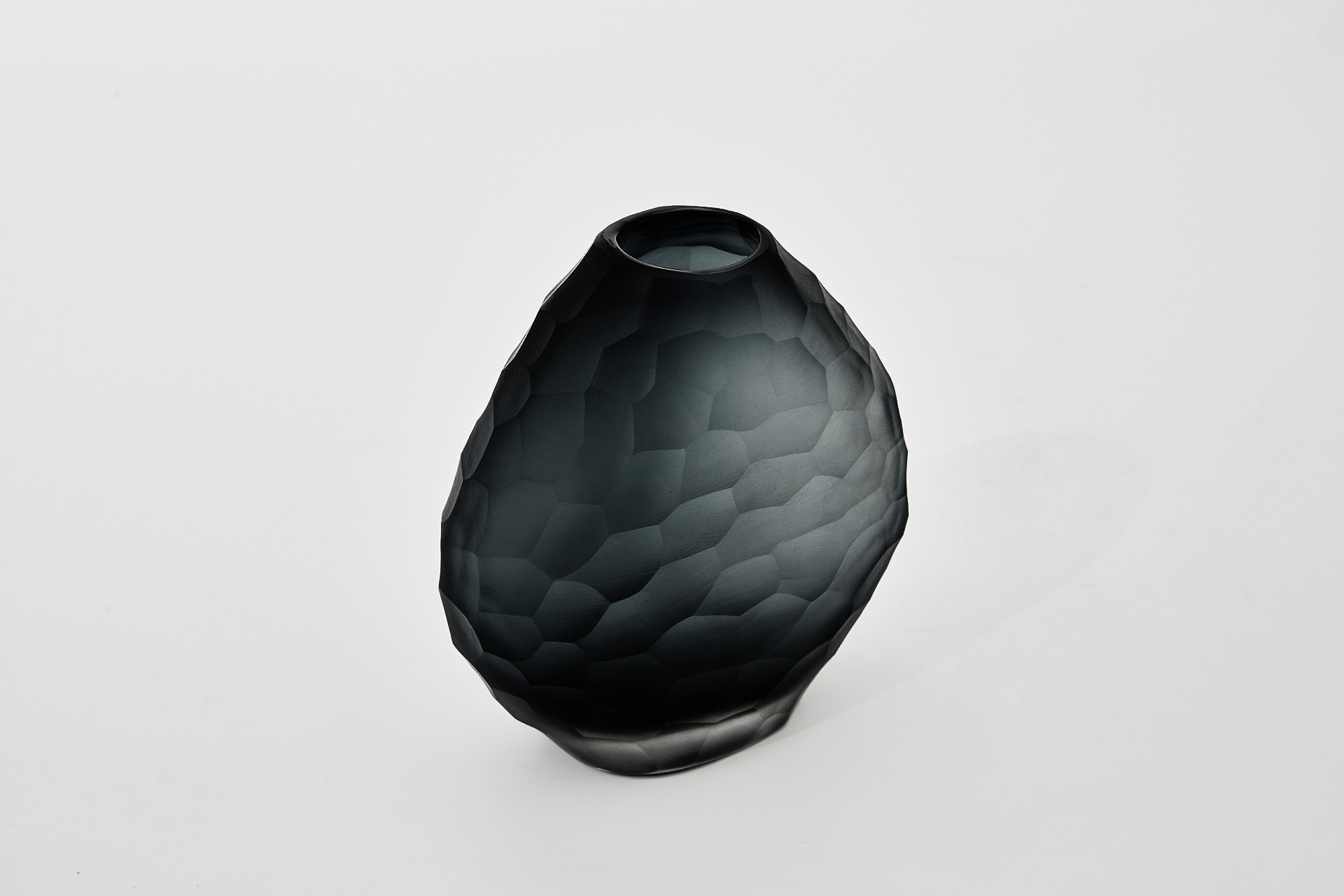 Handmade with etched glass, these vases feature soft, organic shapes to match their unique texture. Thick glass add depth and sturdiness to their soft forms.