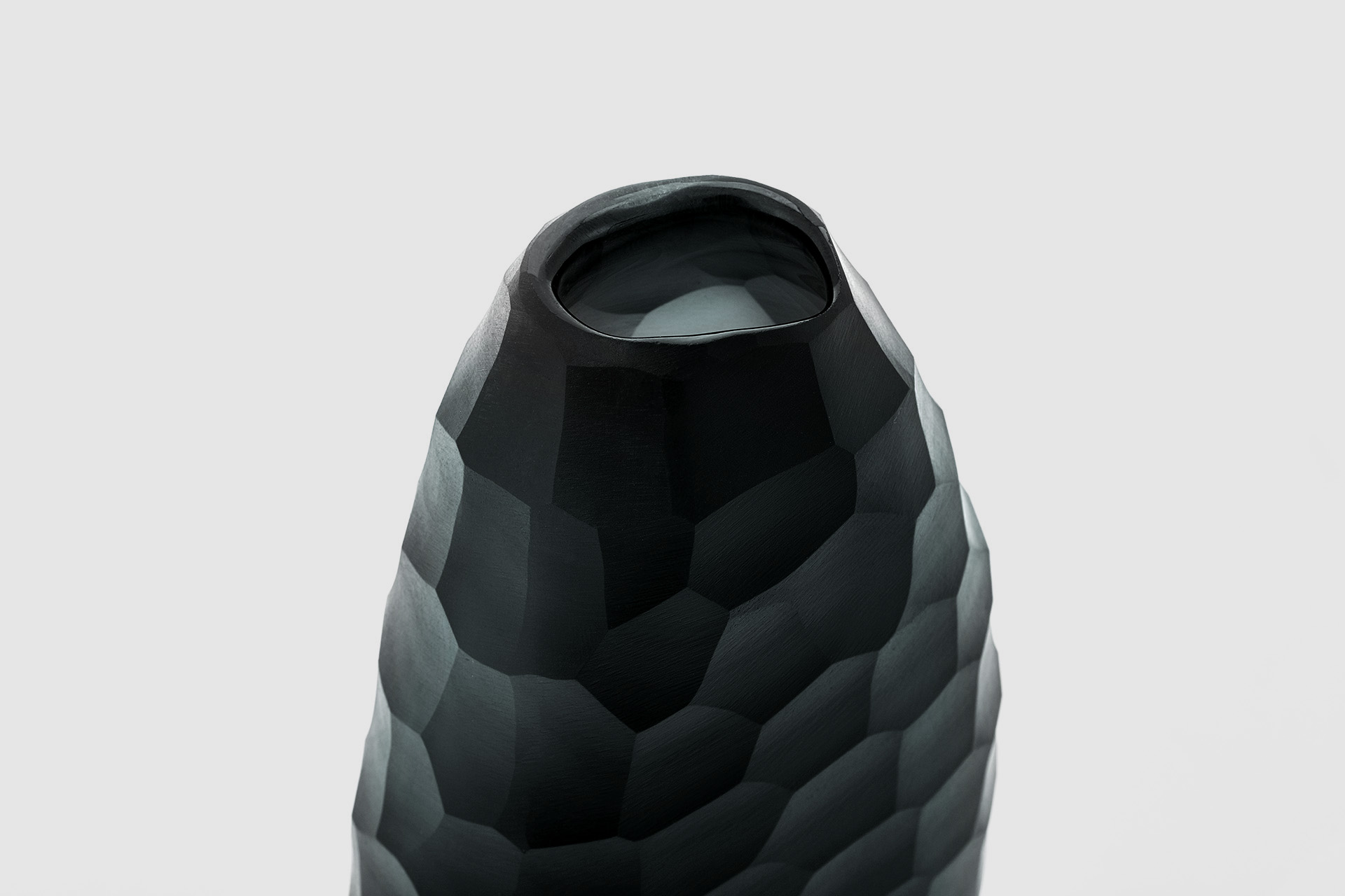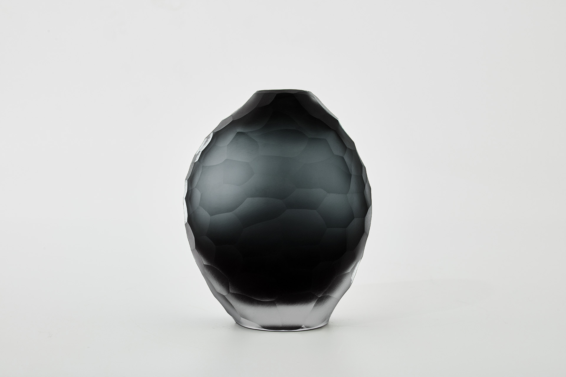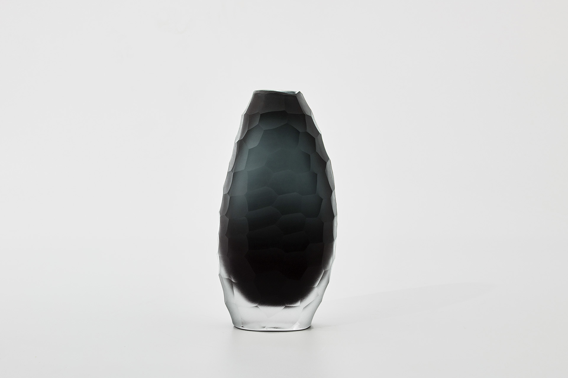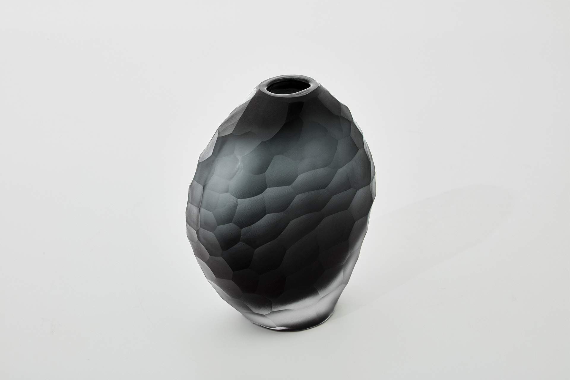 Handmade with etched glass, these vases feature soft, organic shapes to match their unique texture. Thick glass add depth and sturdiness to their soft forms.