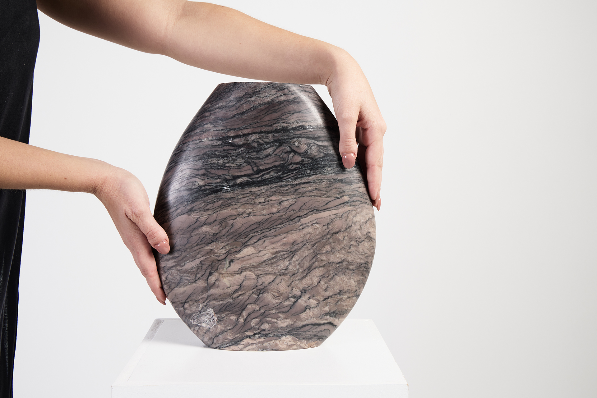 Hand cut and polished in the stunning Italian Grey Levanto marble, our Celeste vase expresses the meeting of nature and design in a soft geometric design.