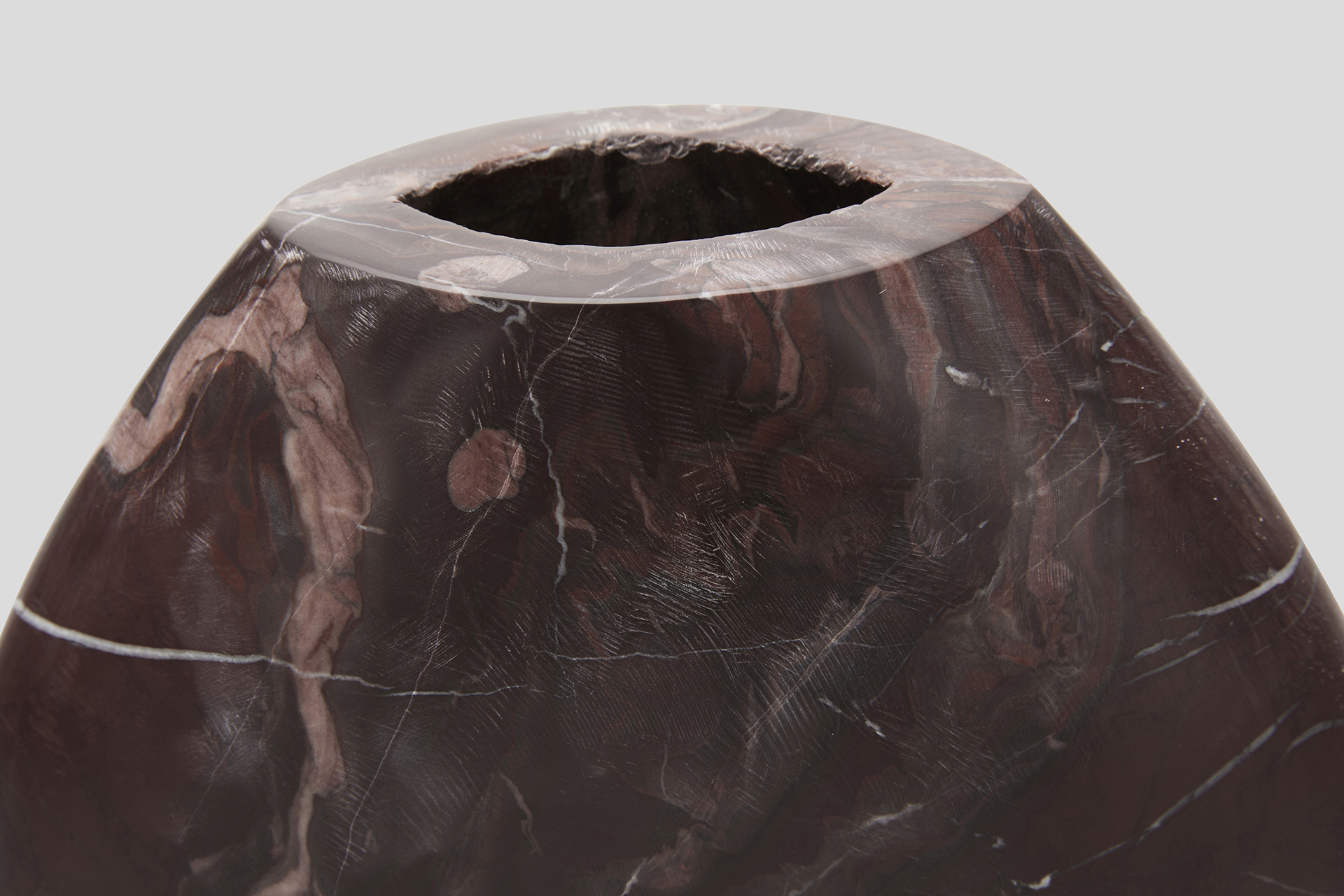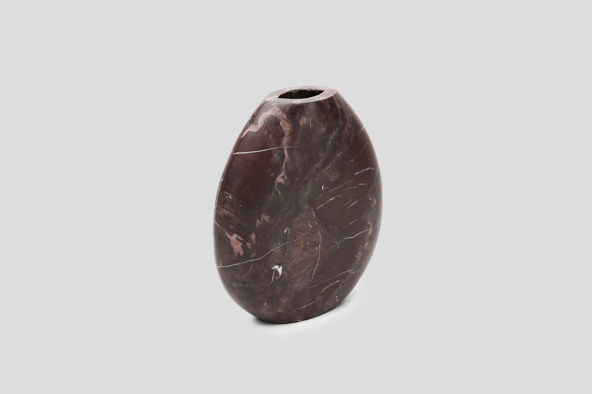 Hand cut and polished in the stunning Italian Rosso Verona marble, our Celeste vase expresses the meeting of nature and design in a soft geometric design.