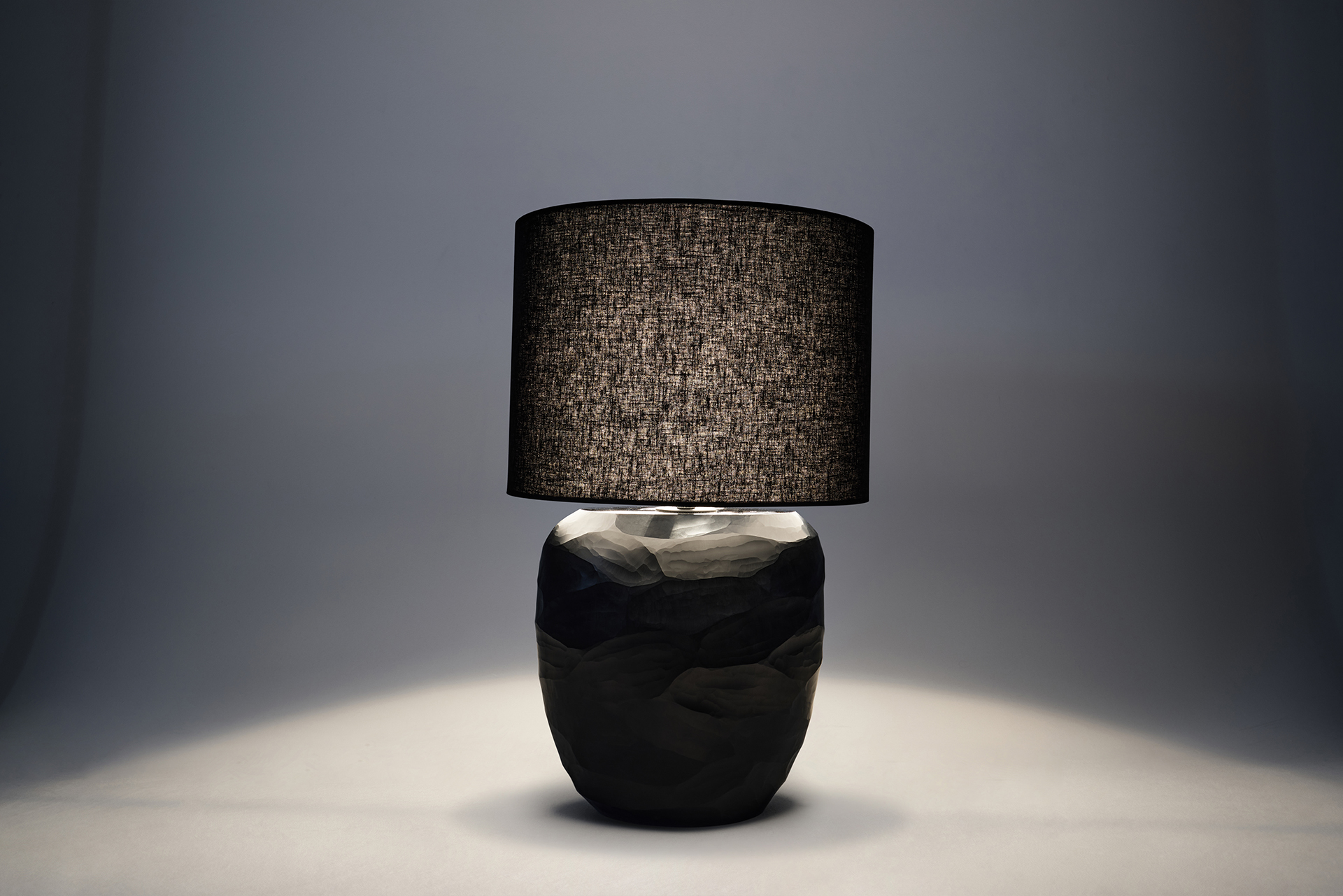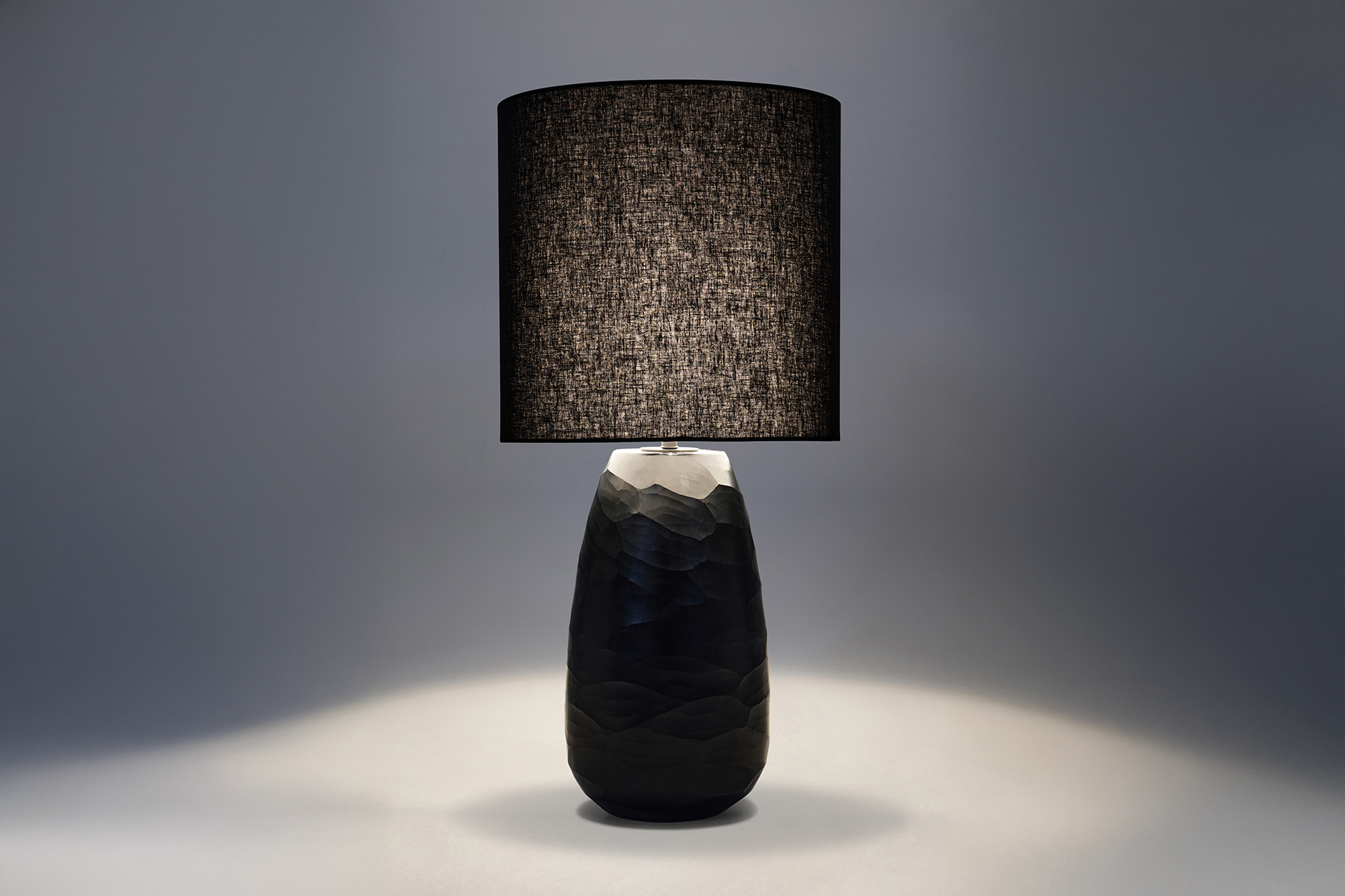 The mouth-blown black glass base is adorned with a unique, hand-etched cloud pattern finish, creating a soft, ethereal texture that adds opulence to any room. Its abstract design brings a refined touch of elegance, making it the perfect accent piece for adding both visual interest and a sense of luxury to your space.