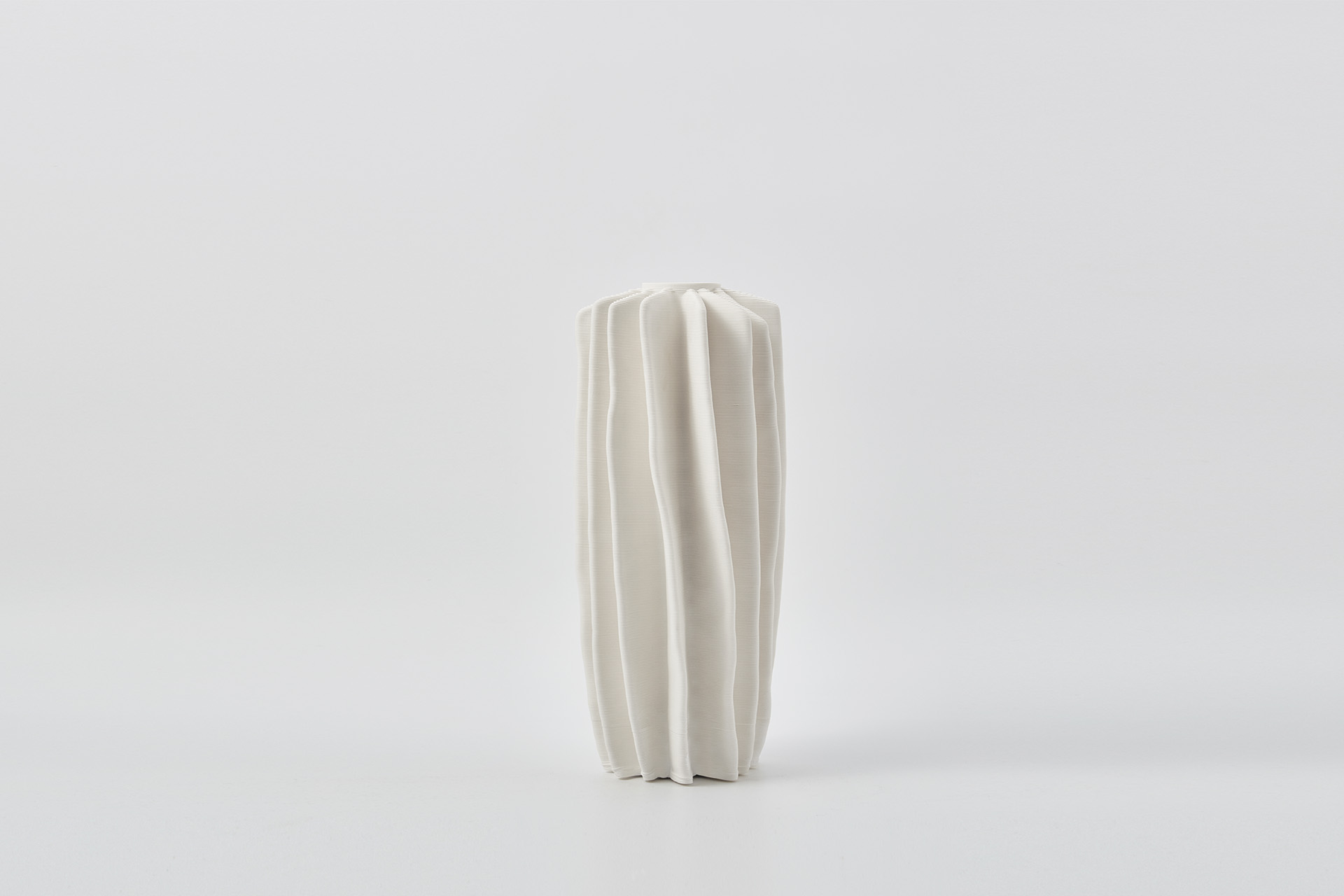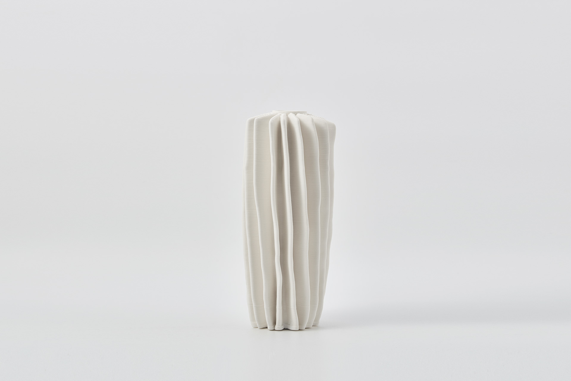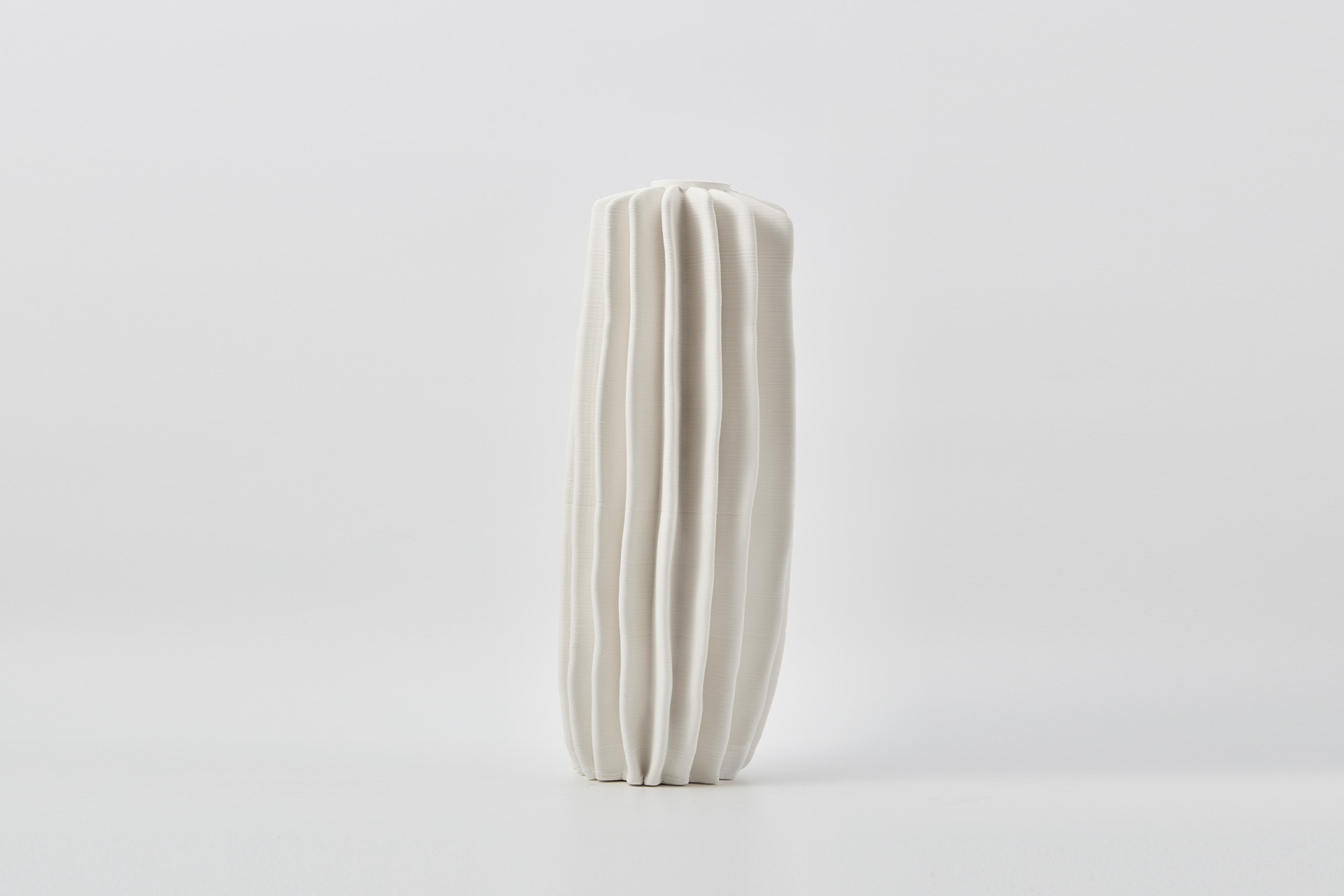 Tall and dramatic this coral-inspired, textured ceramic vase is finished with amazing 3D printed etching.