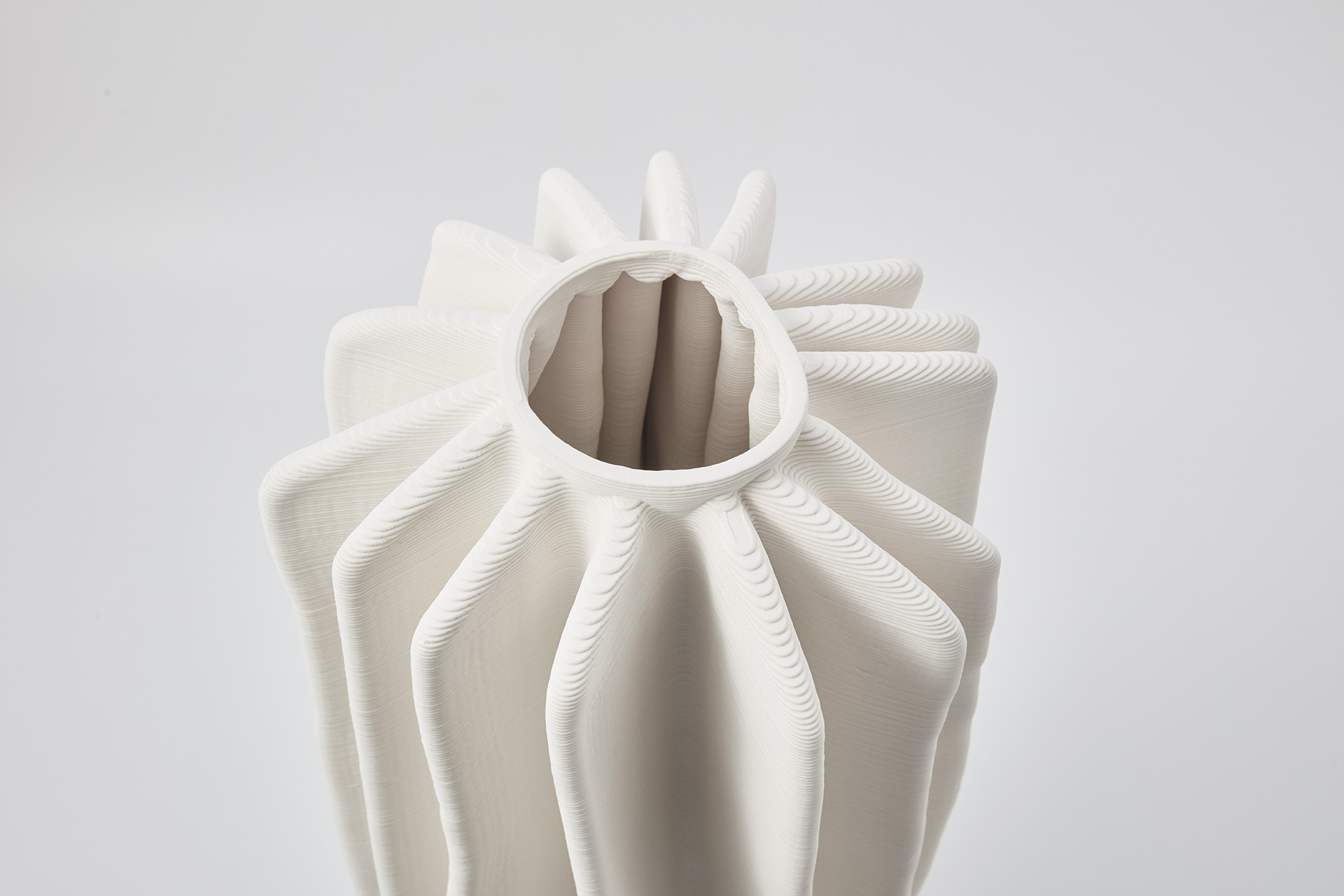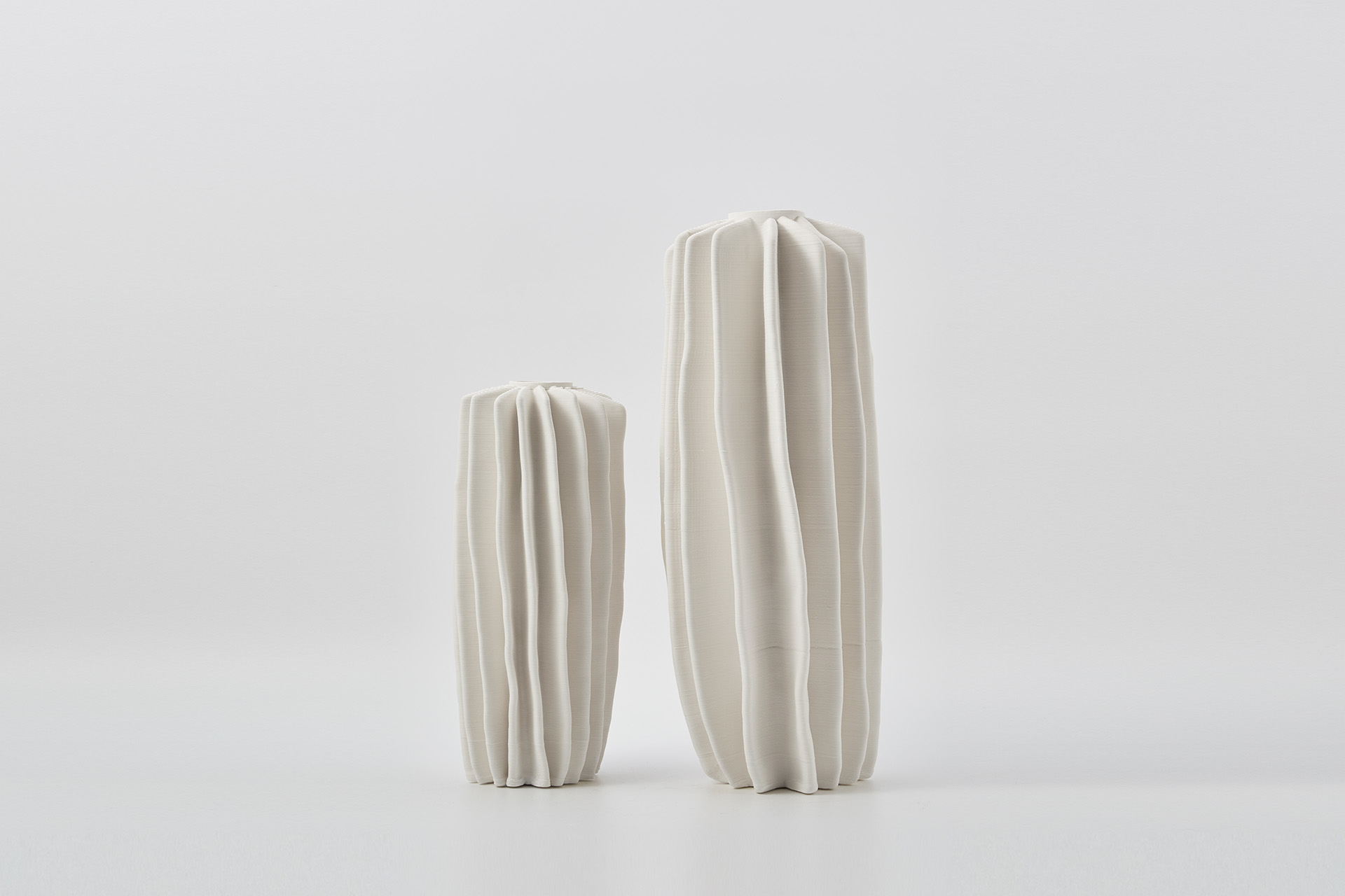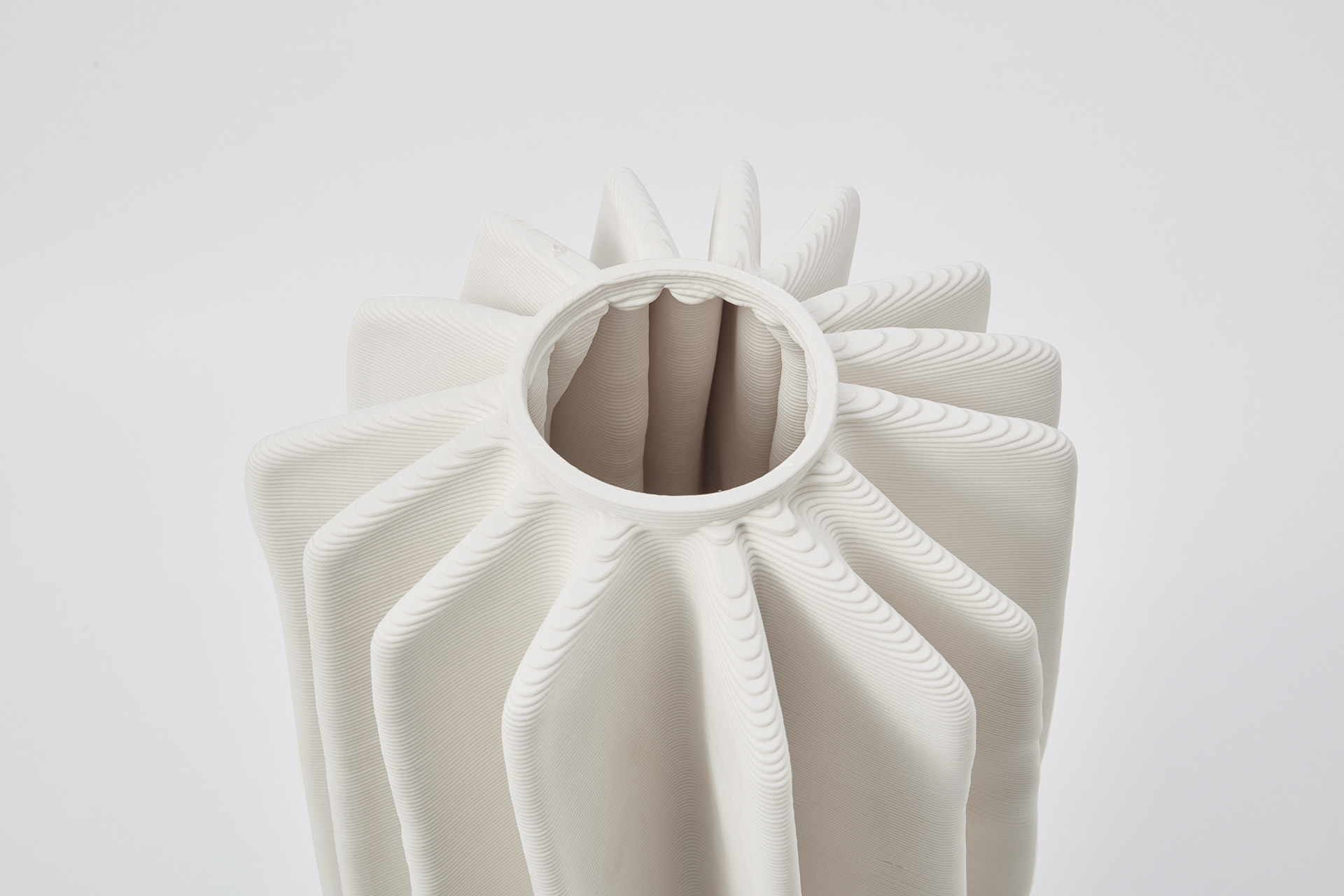 Tall and dramatic this coral-inspired, textured ceramic vase is finished with amazing 3D printed etching.