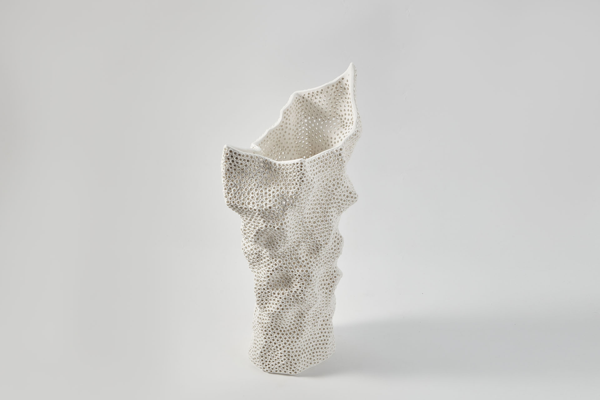 The Corillia collection is inspired by nature and can only be hand crafted by master artisans. The design features an array of artfully placed holes that mimic the organic formations found in coral reefs, creating a striking visual effect that is both modern and natural.