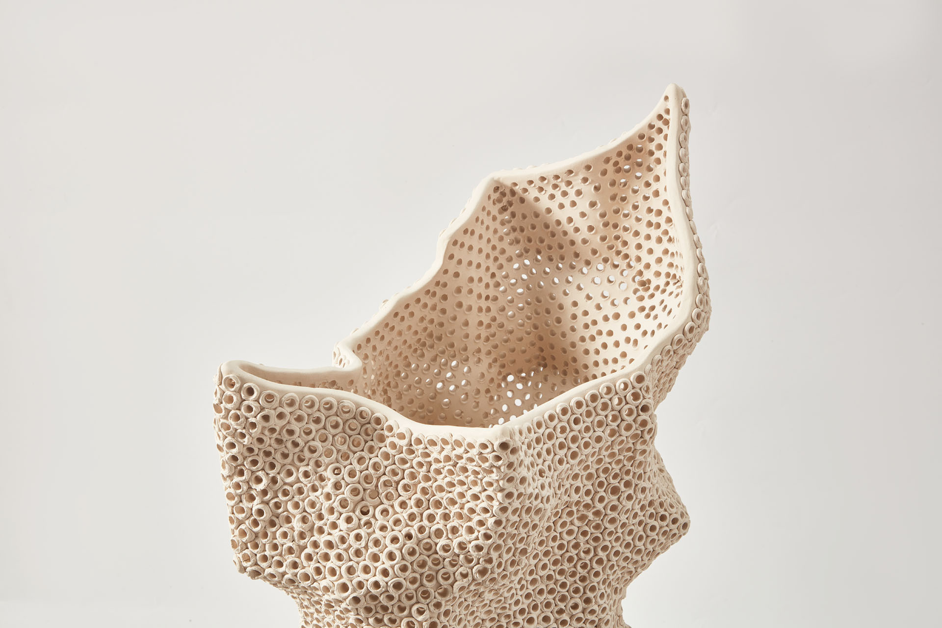 The Corillia collection is inspired by nature and can only be hand crafted by master artisans. The design features an array of artfully placed holes that mimic the organic formations found in coral reefs, creating a striking visual effect that is both modern and natural.