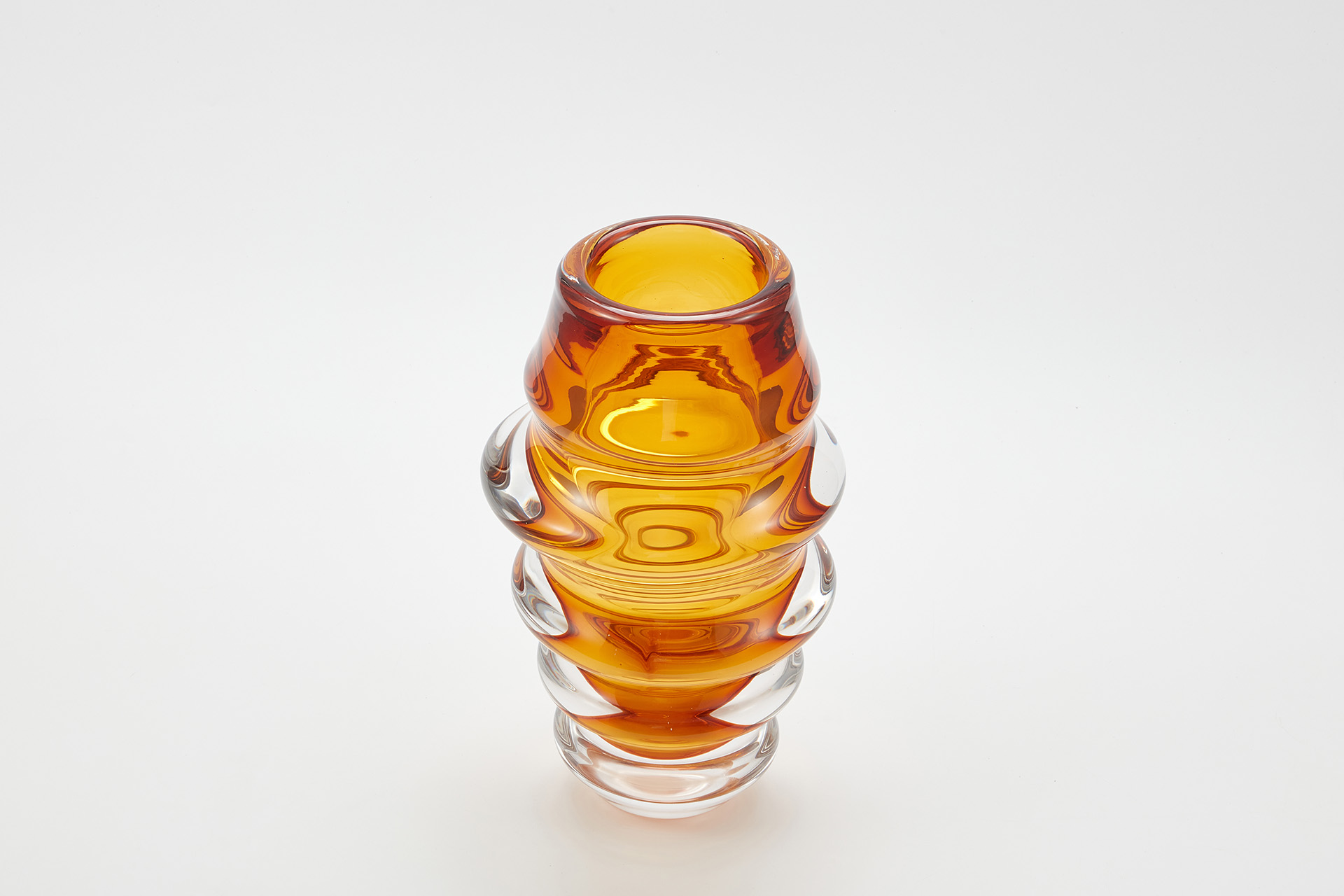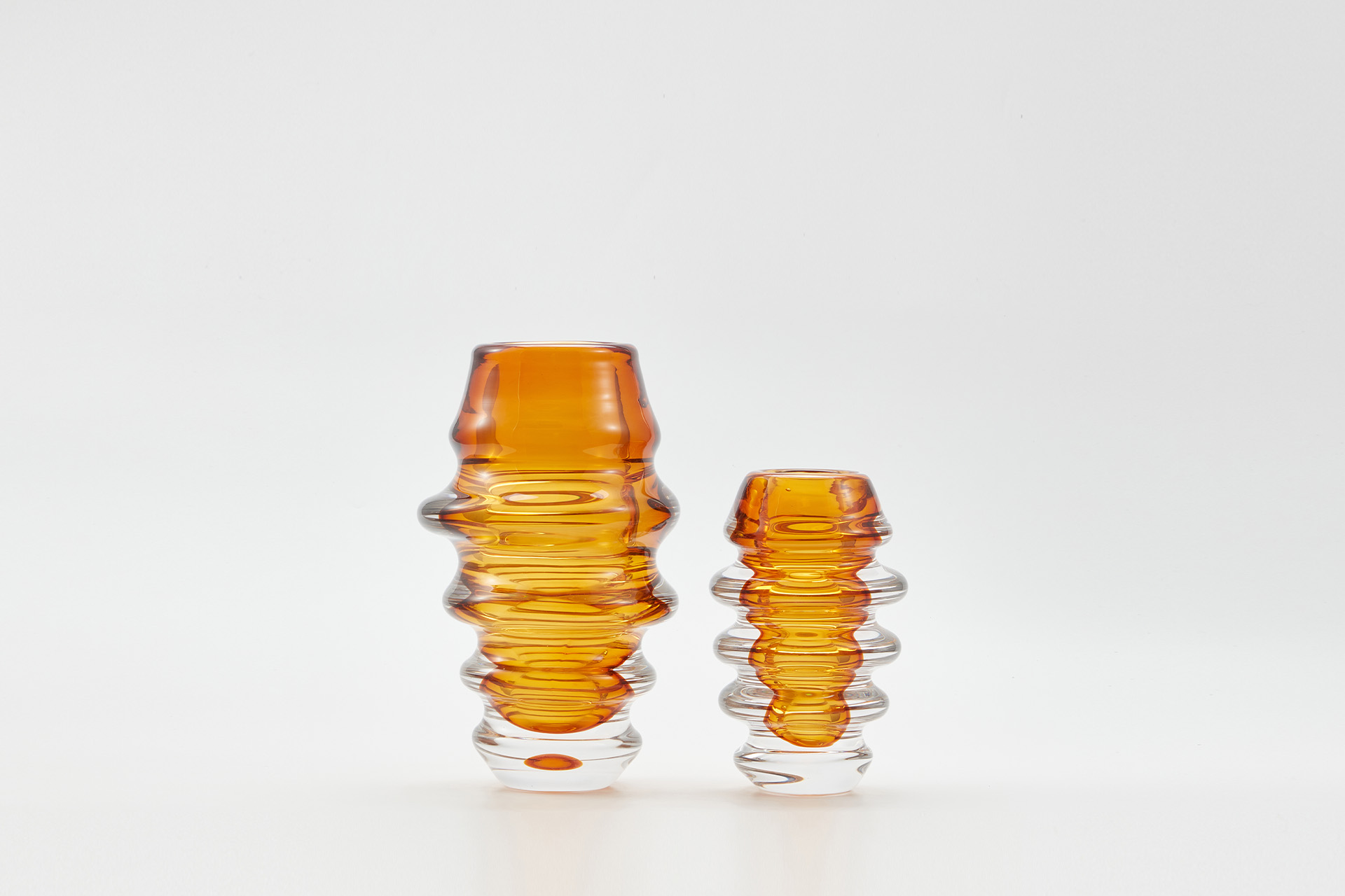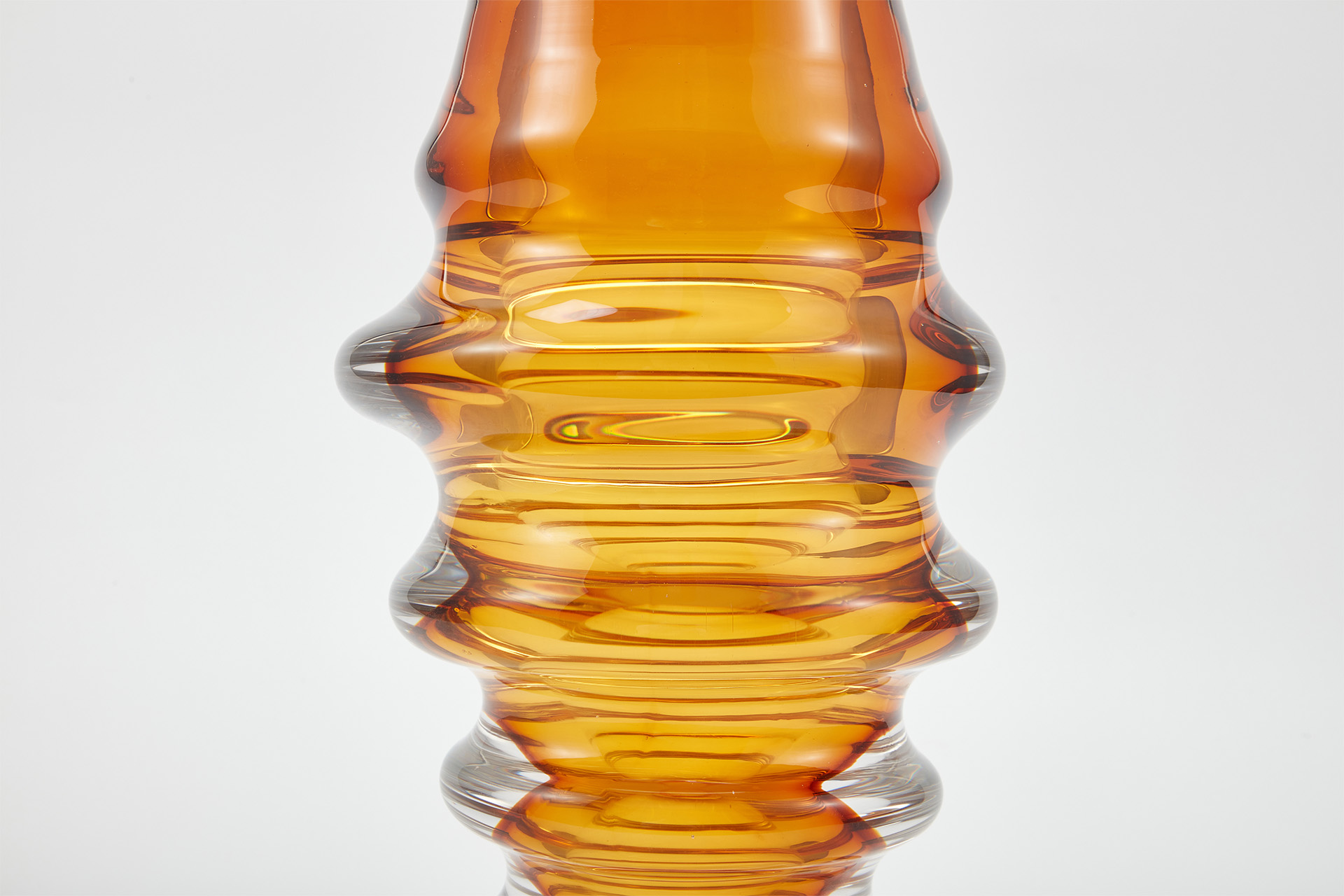 The mouthblown glass displays colour inside and clear outside, alongside the wavy silhouette making it quite the visual statement piece.