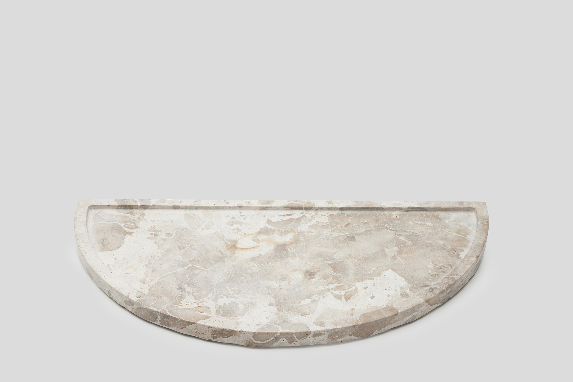 This extraordinary Crescent tray is chiselled from a solid block of marble like a sculpture, then meticulously polished. The material is Butterscotch marble, which has soft intersecting veins of beige.