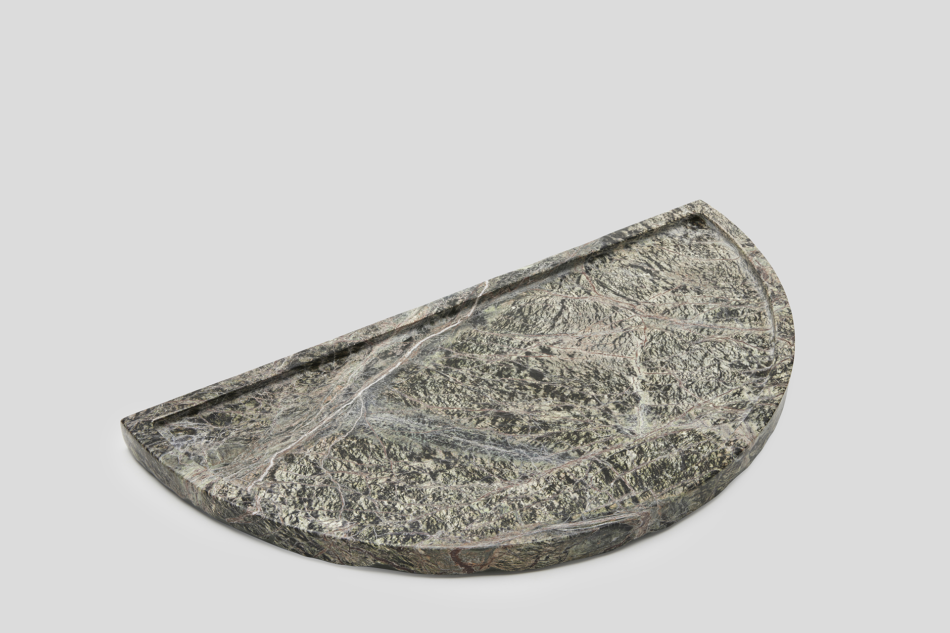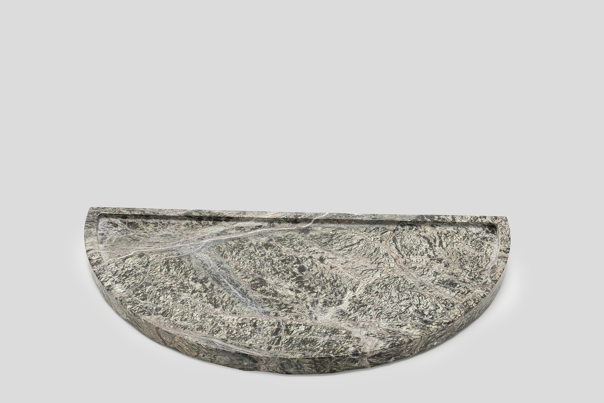 This extraordinary Crescent tray is chiselled from a solid block of marble like a sculpture, then meticulously polished.