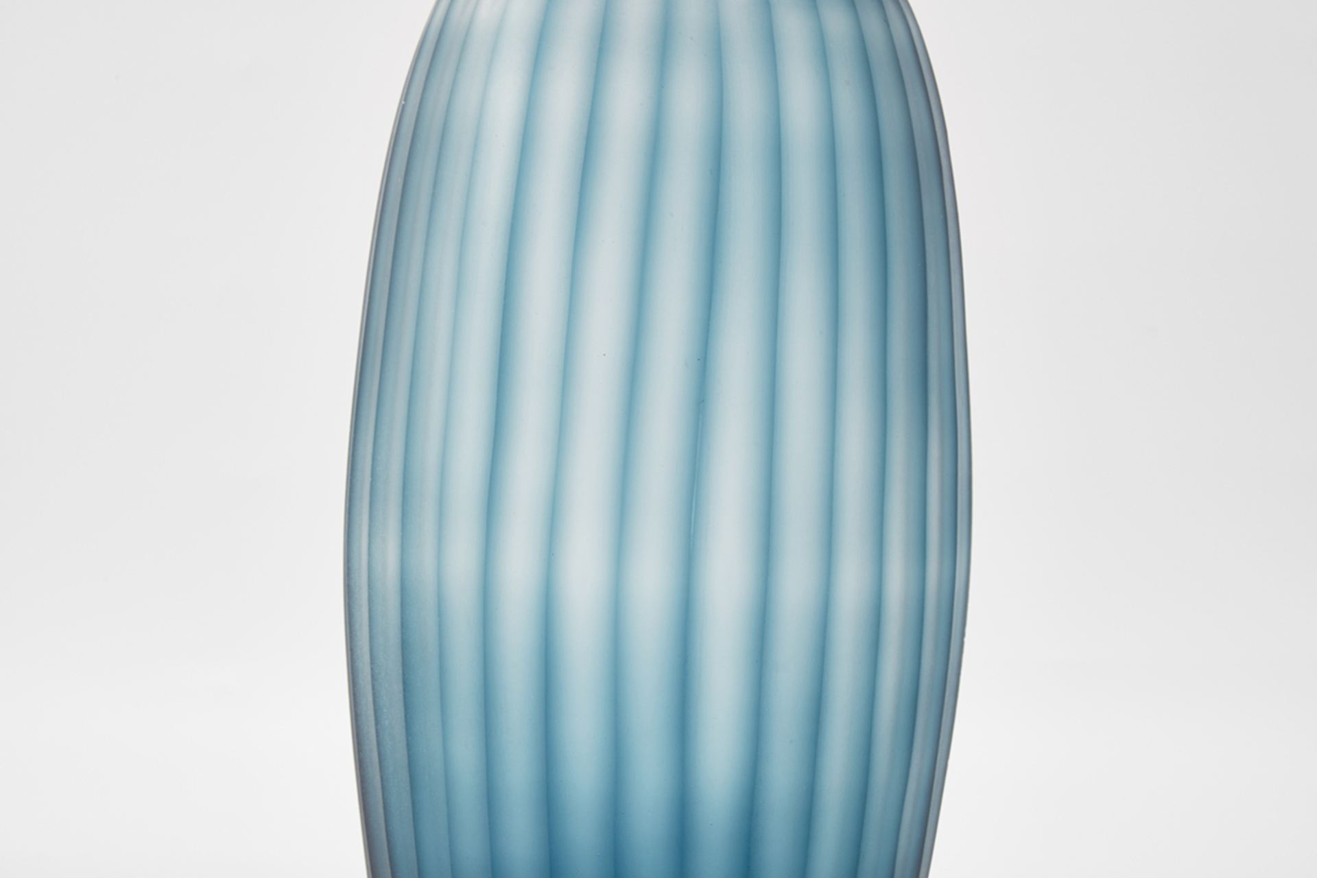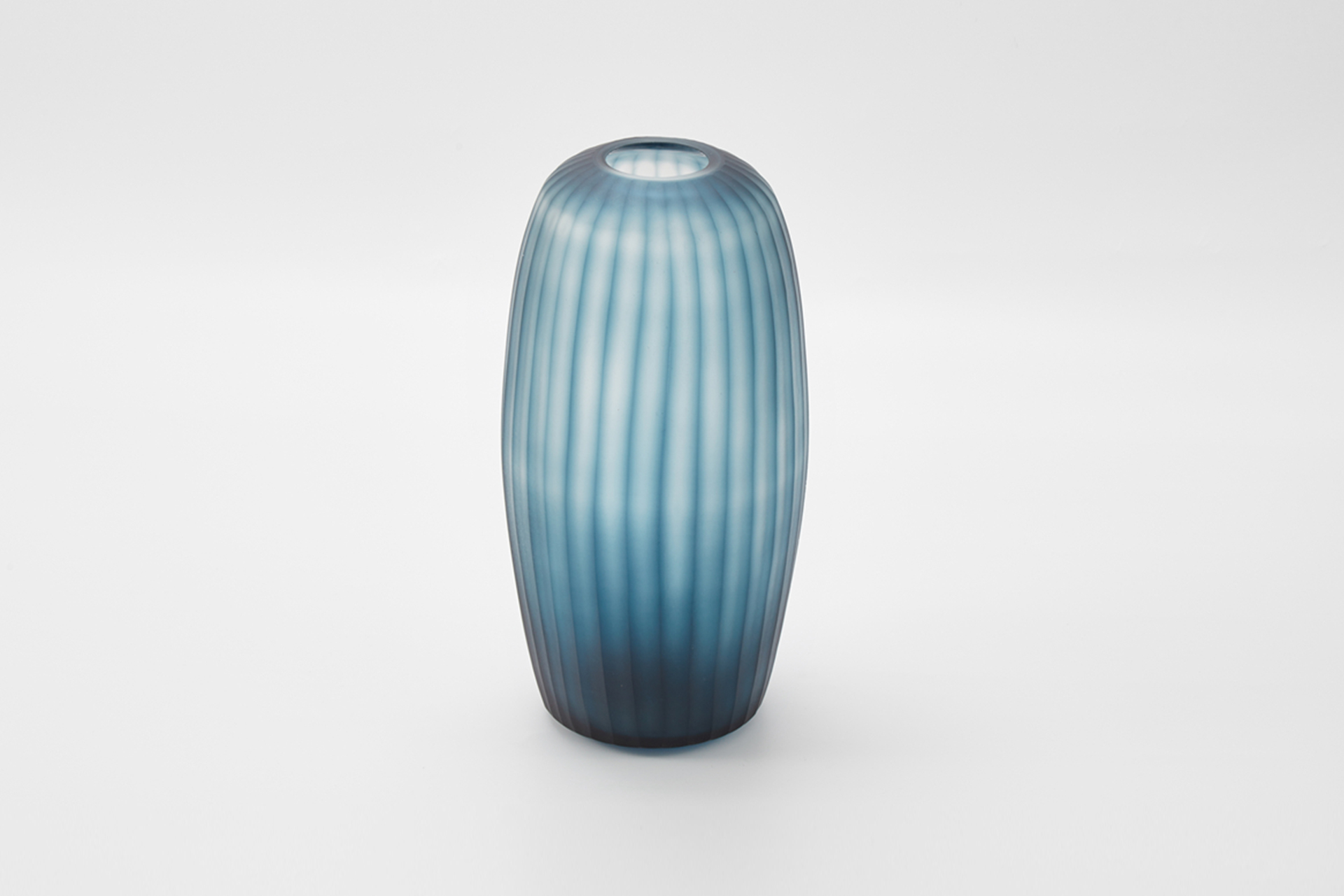 Impressive in size with alluring vertical grooves, these vases boast a generous size with beautiful colour. Hand crafted and hand finished in matte blue tones.