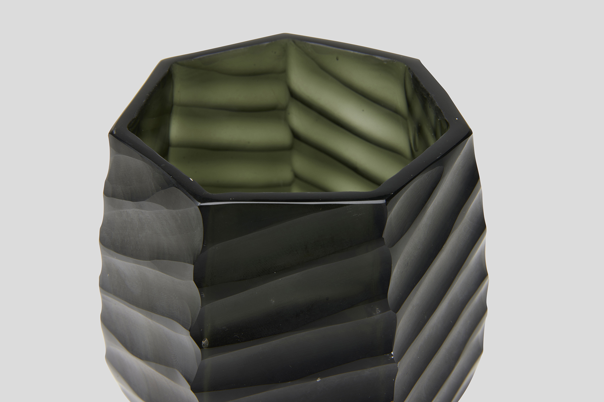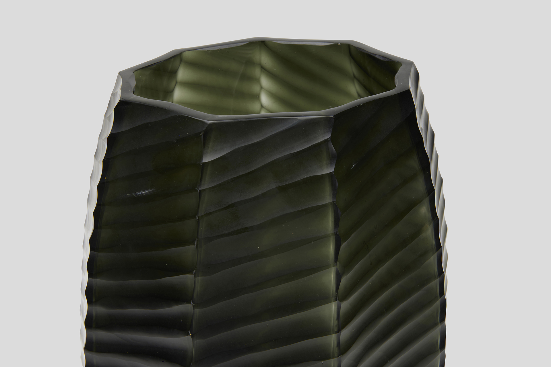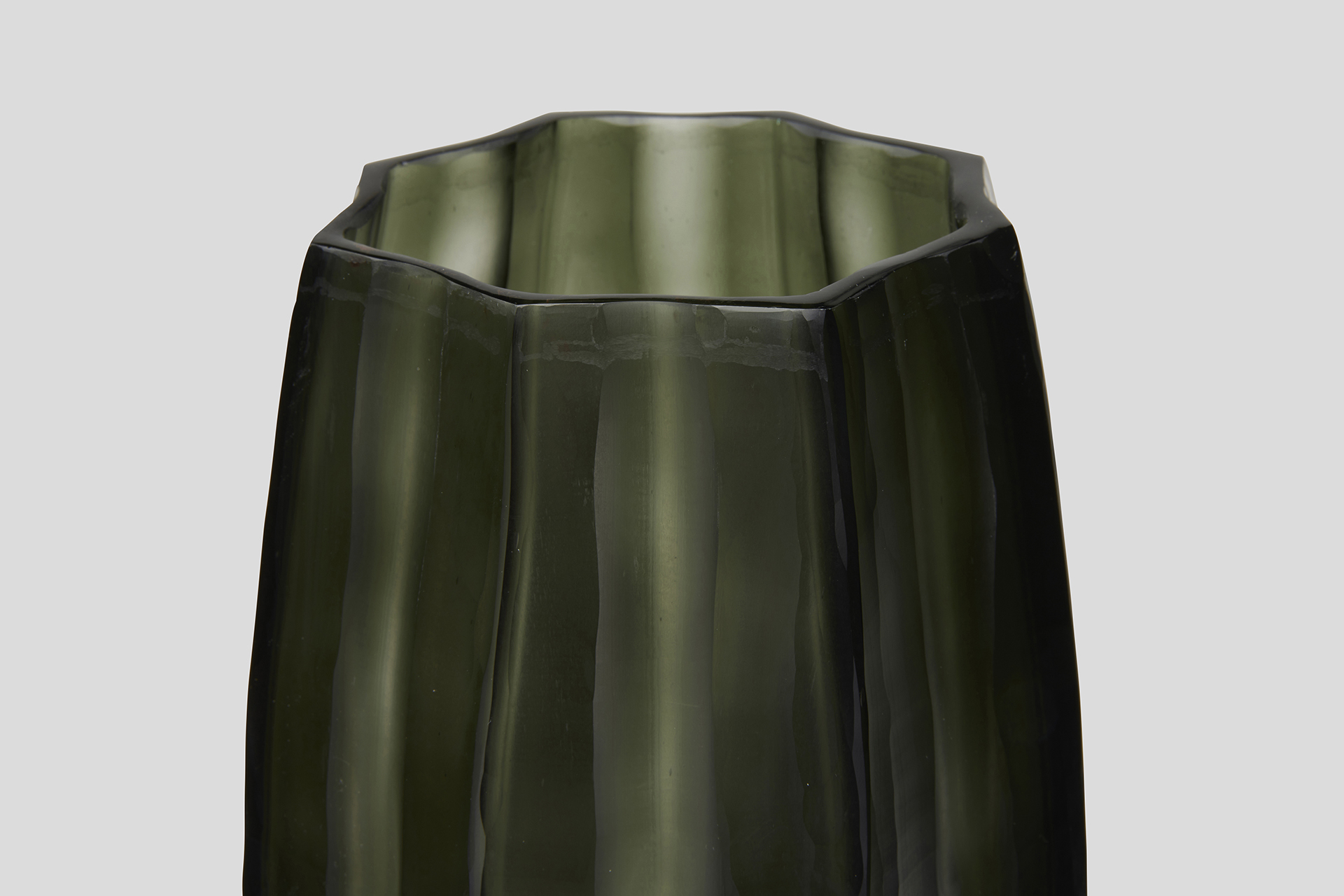 Our Lotus collection is a captivating design inspired by nature. This exquisite vase is distinguished by a sturdy faceted shape enhanced with a highly textured finish and an elegant color.