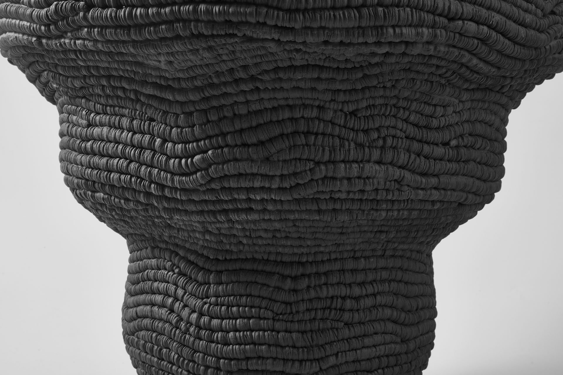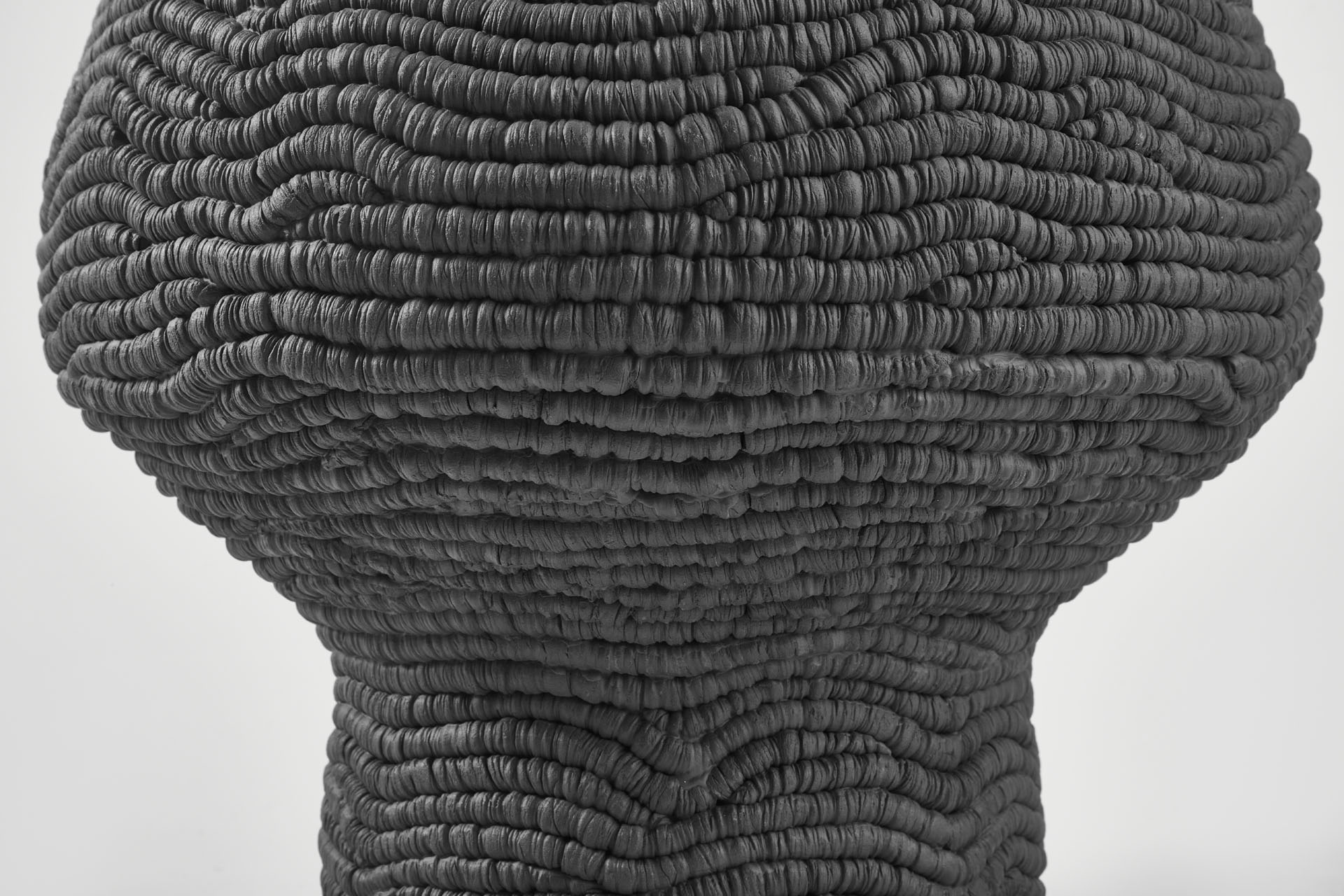 Each layer is built up by hand with a coiling technique.