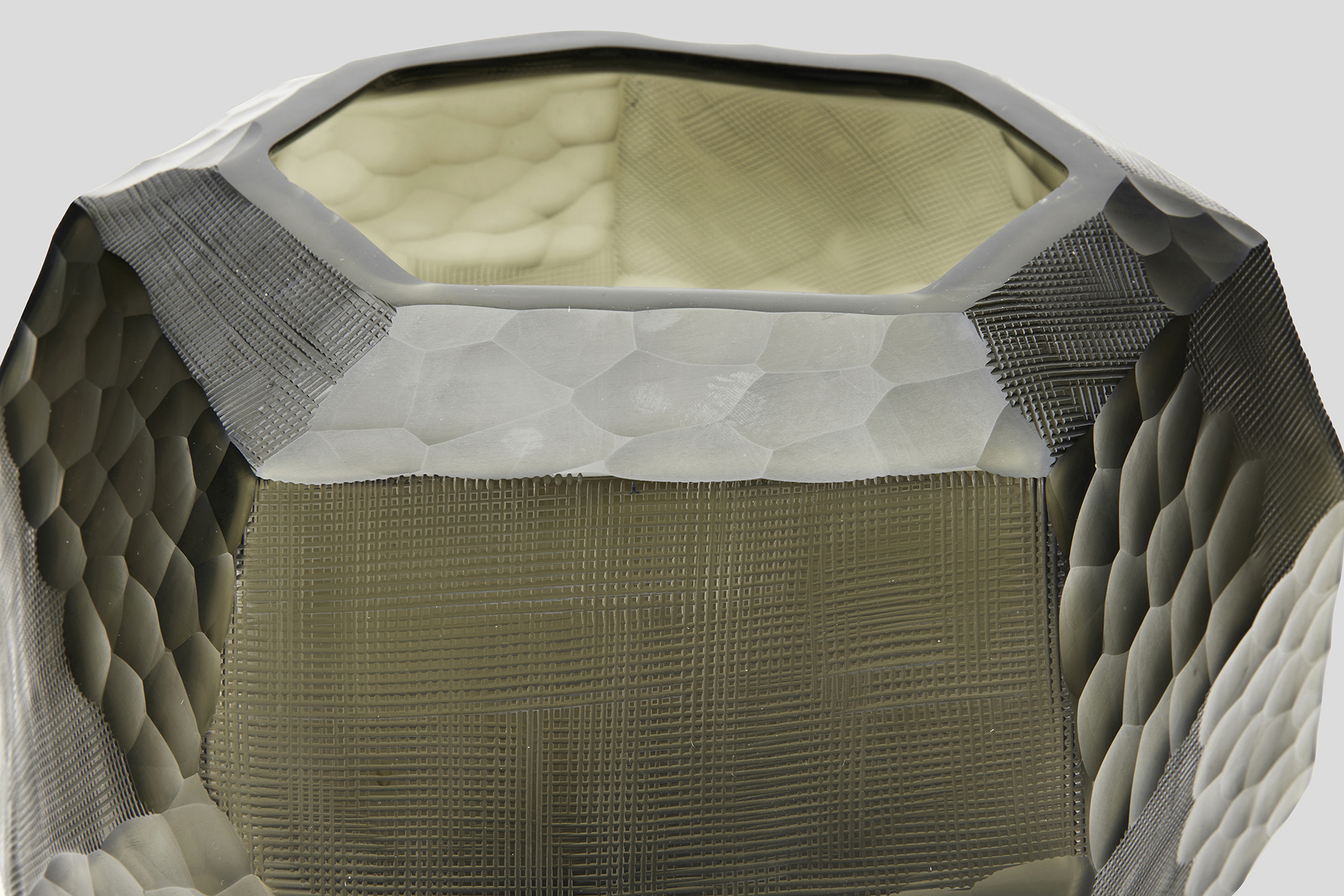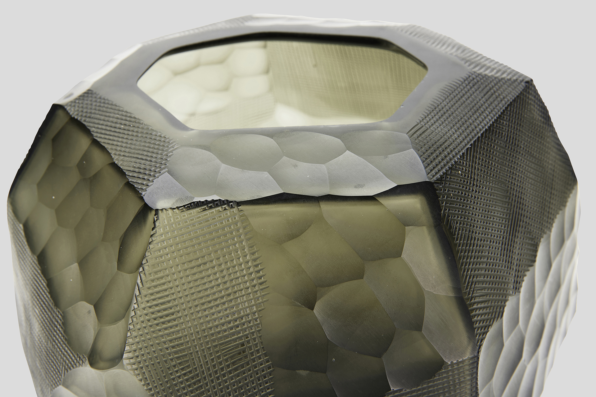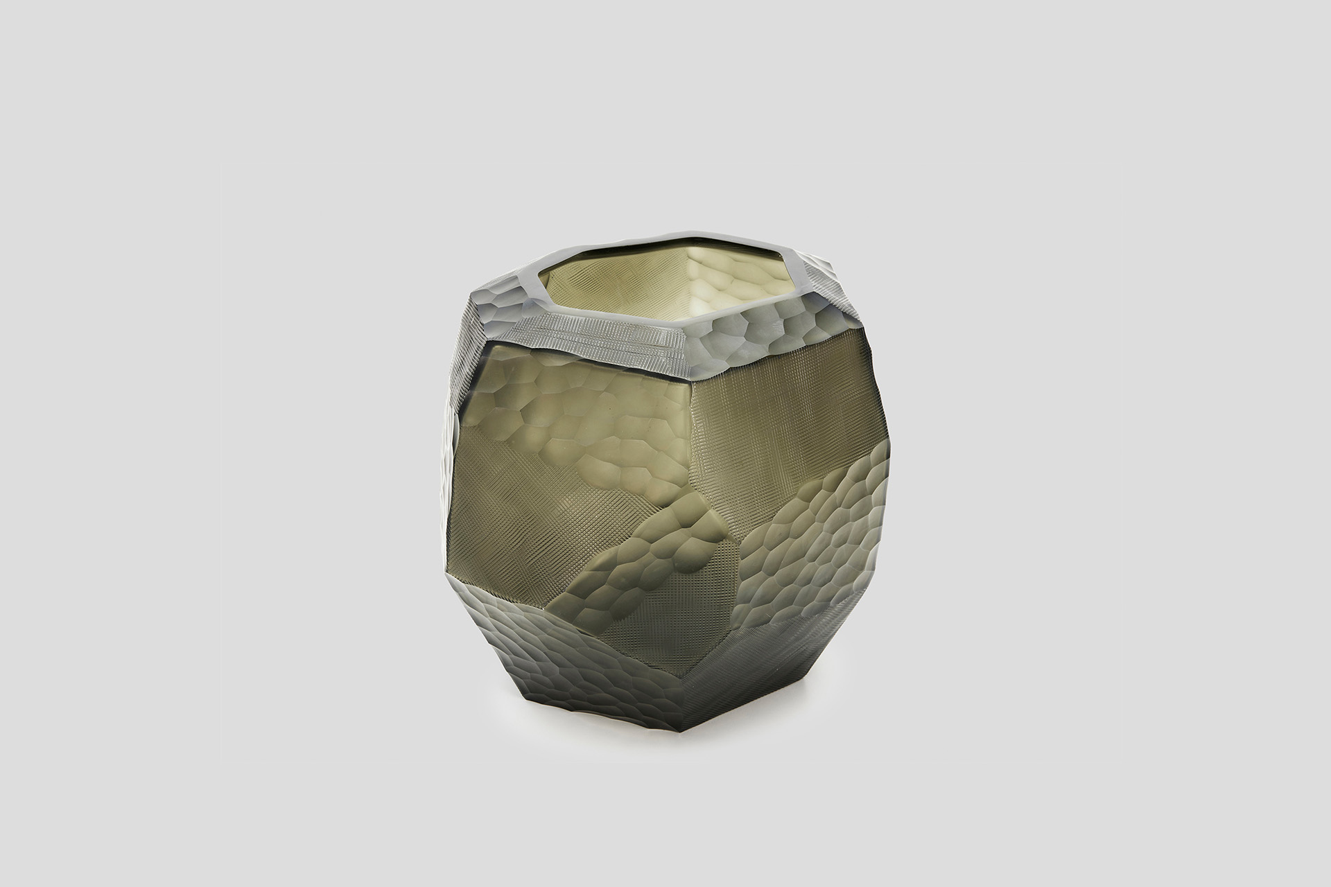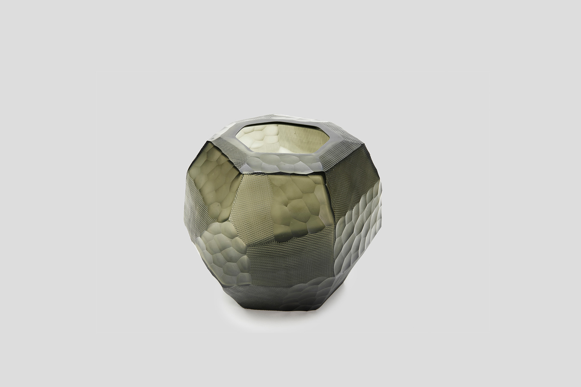 Our Paradis vases and bowl are crafted using different hand carving processes to make the tactile experience one of a kind, also allowing the light to play with the glass surfaces, reflecting colors in a unique way.