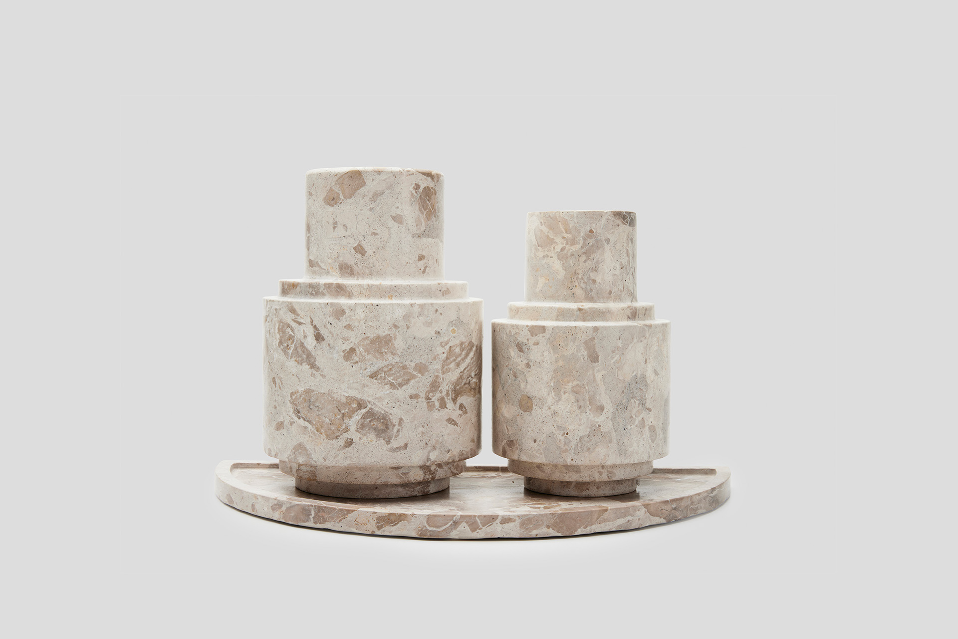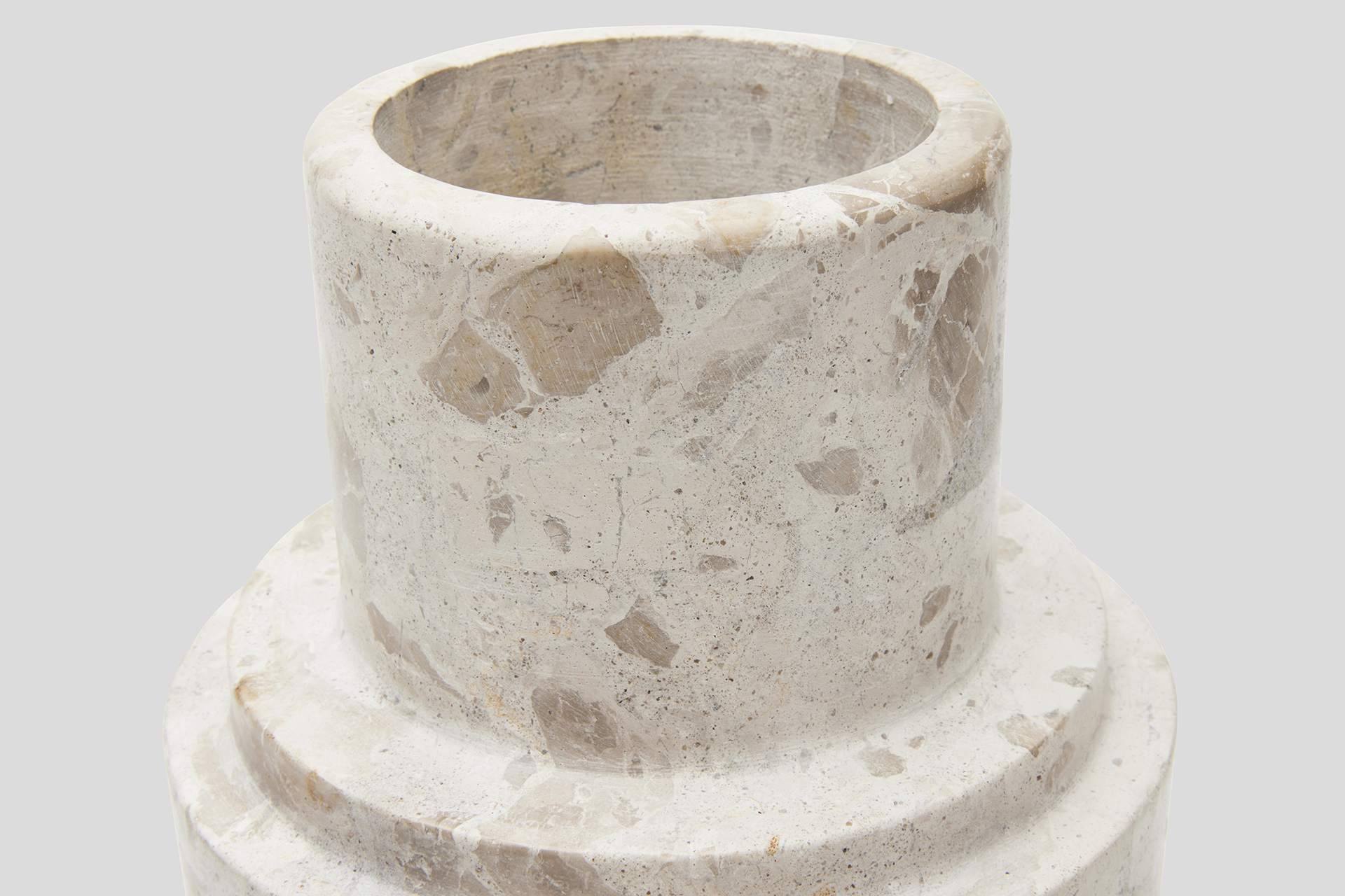 This extraordinary Pillar vase is chiselled from a solid block of marble like a sculpture, then meticulously polished.