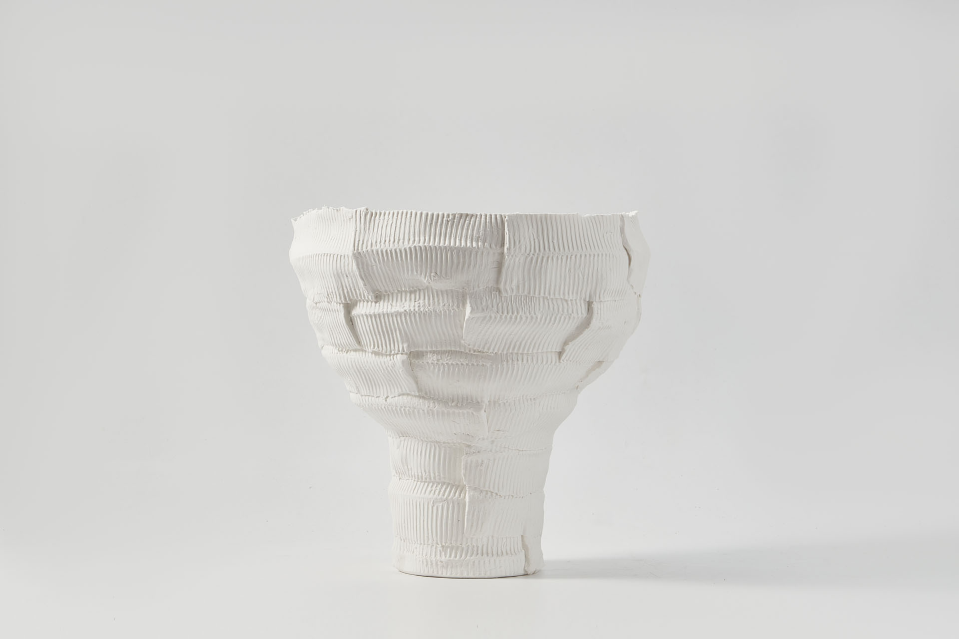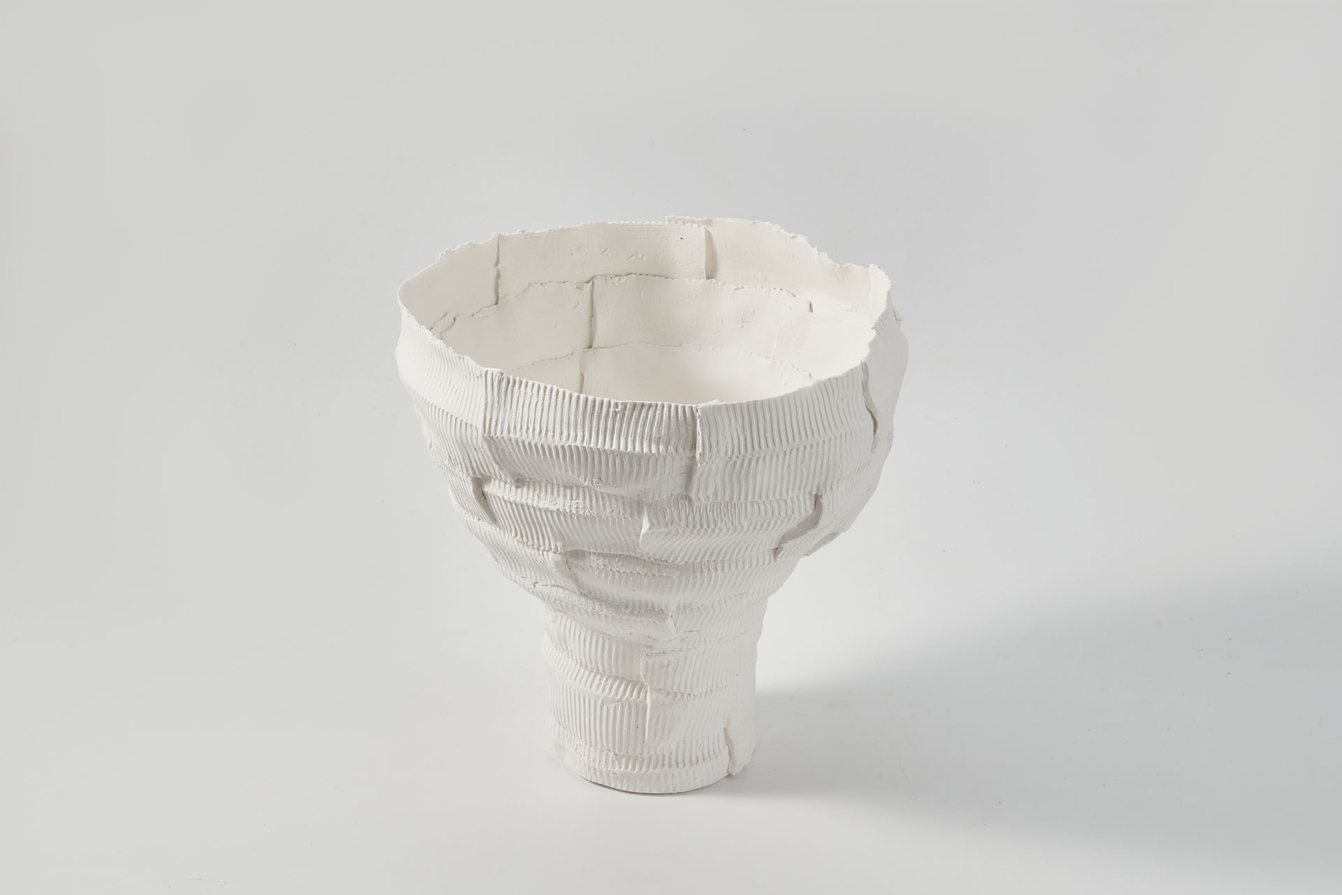Drawing from its pine tree name sake, the Ponderosa vase sits tall and proud. The series can only be made by very experienced craftsman. Each piece is made with handmade ceramic sections layered carefully on top of one another to create the bowl and vase shapes.