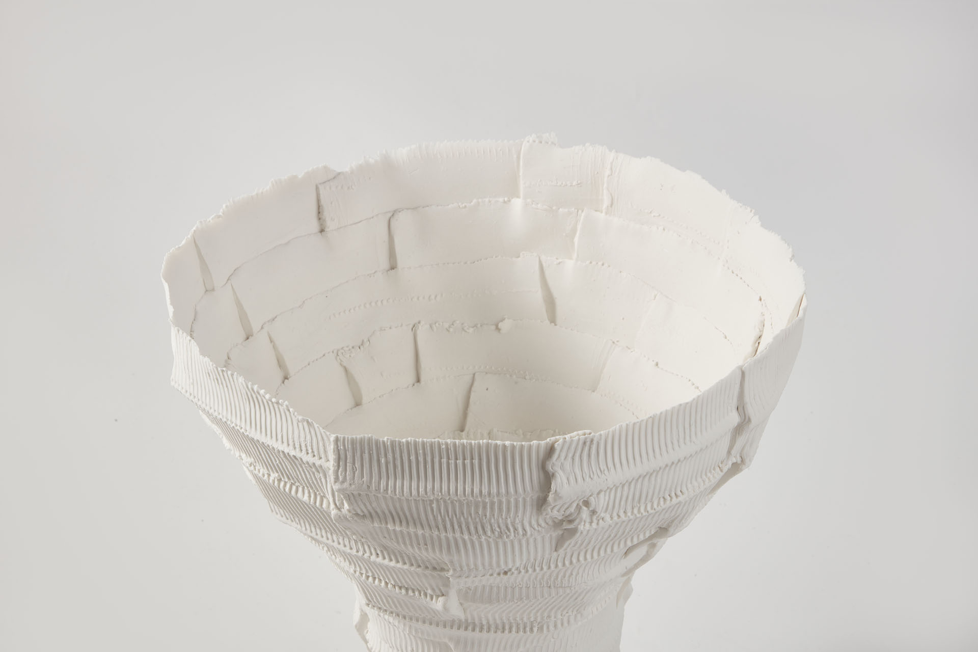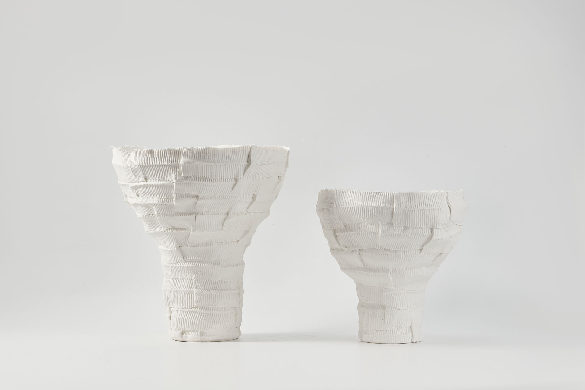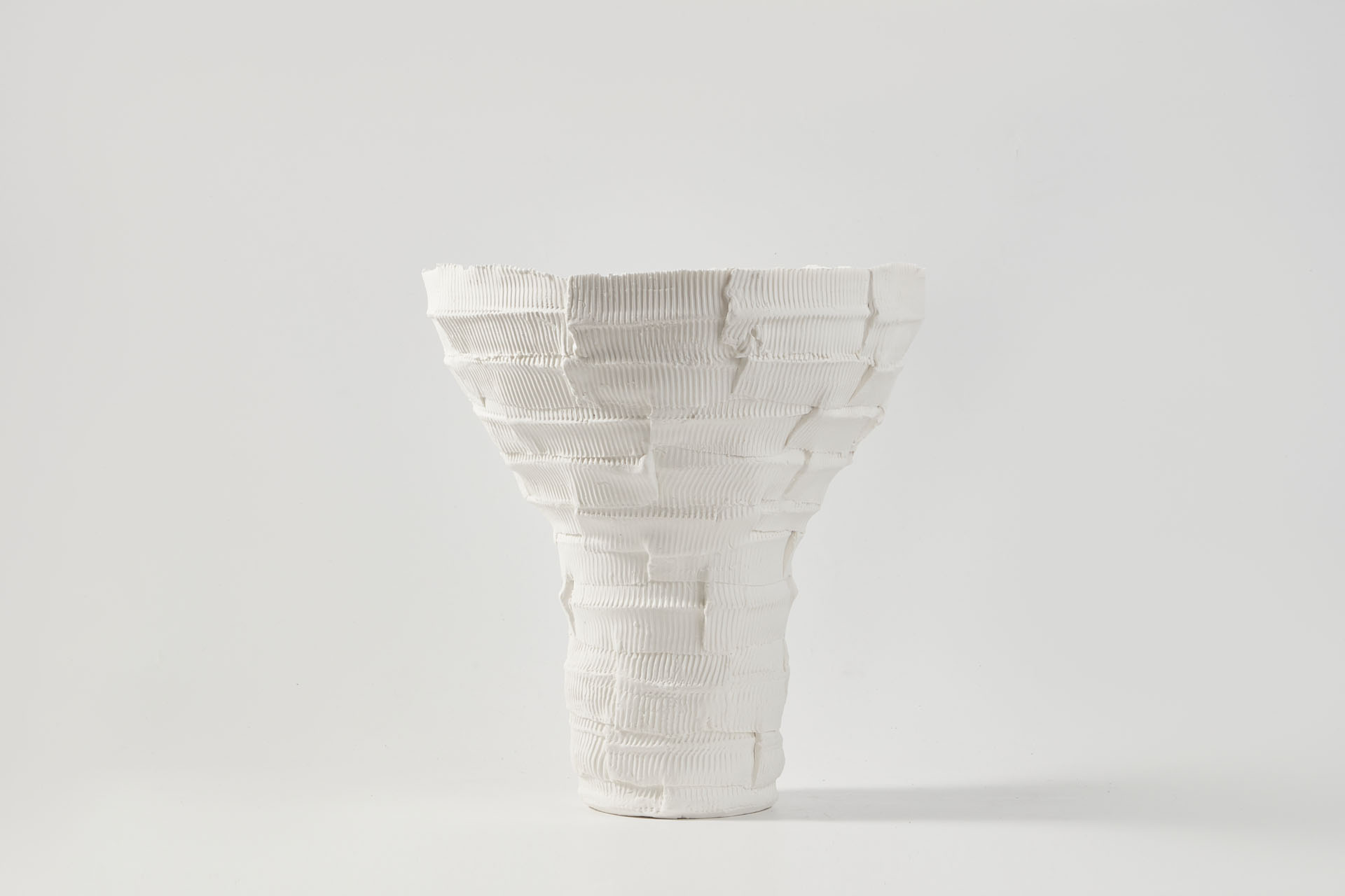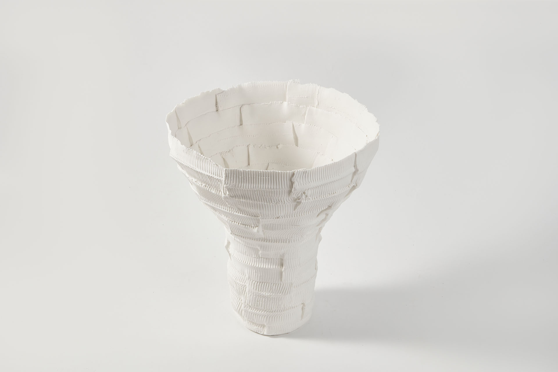 Drawing from its pine tree name sake, the Ponderosa vase sits tall and proud. The series can only be made by very experienced craftsman. Each piece is made with handmade ceramic sections layered carefully on top of one another to create the bowl and vase shapes.