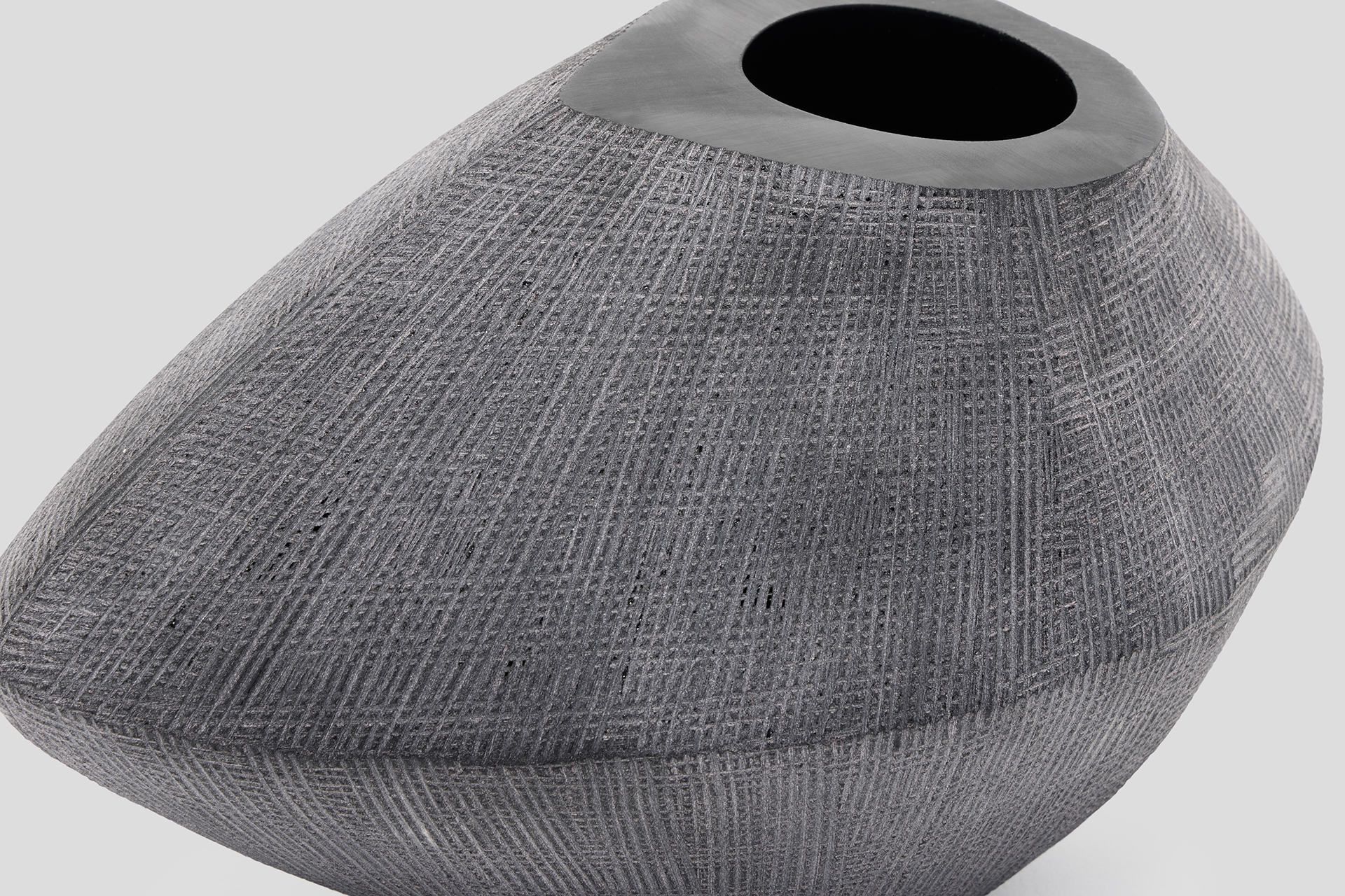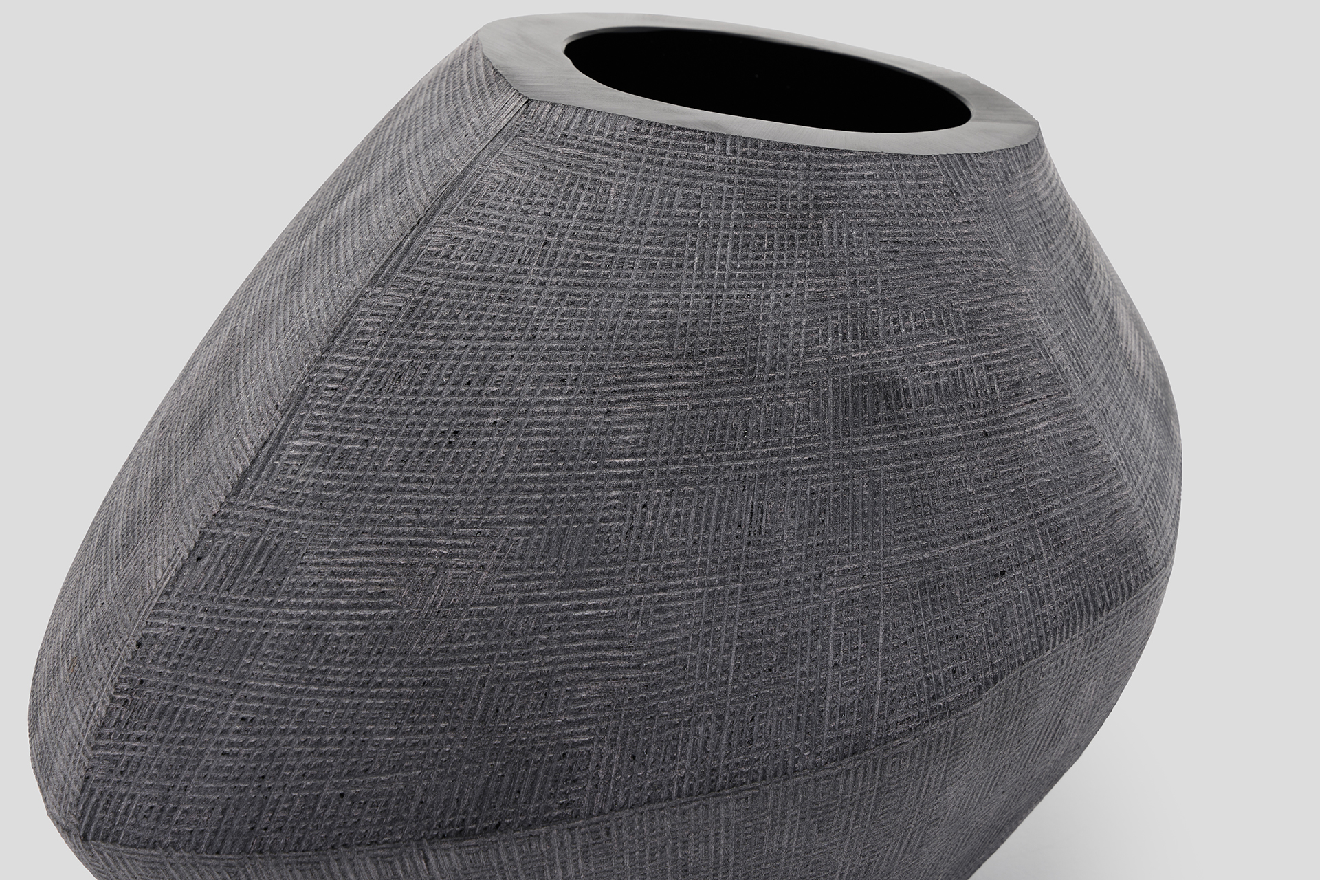The Quadro vases exude craftsmanship with their sculptural silhouette and faceted surface in mouth-blown glass.