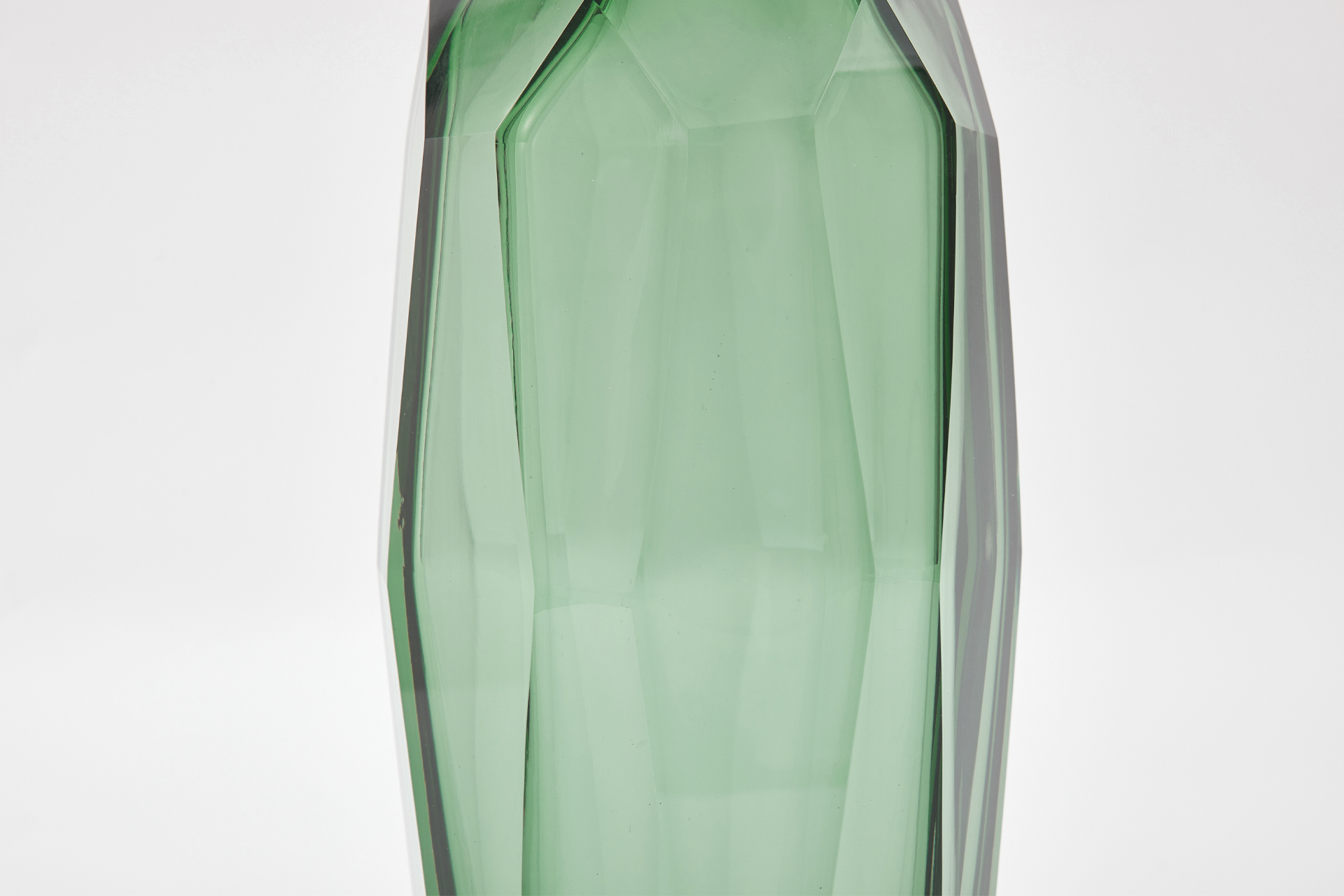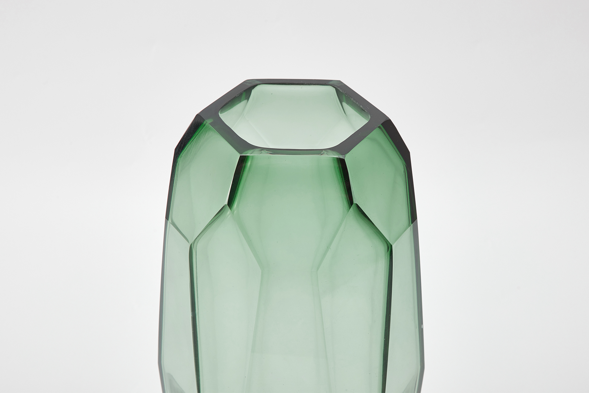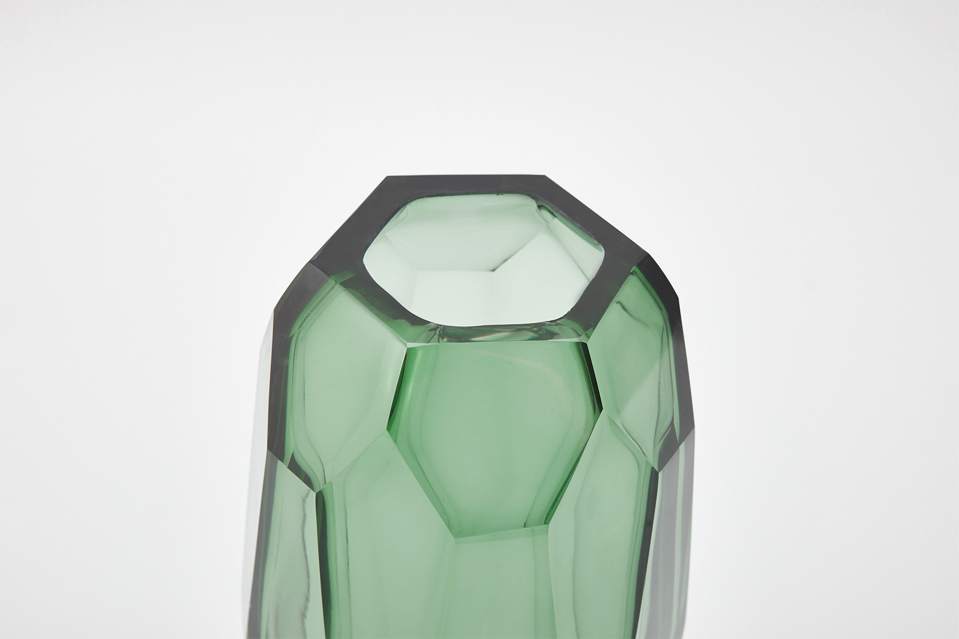 The multi-faceted dimensional characteristics of these hand blown, hand cut and polished sculptural vases are exquisite.