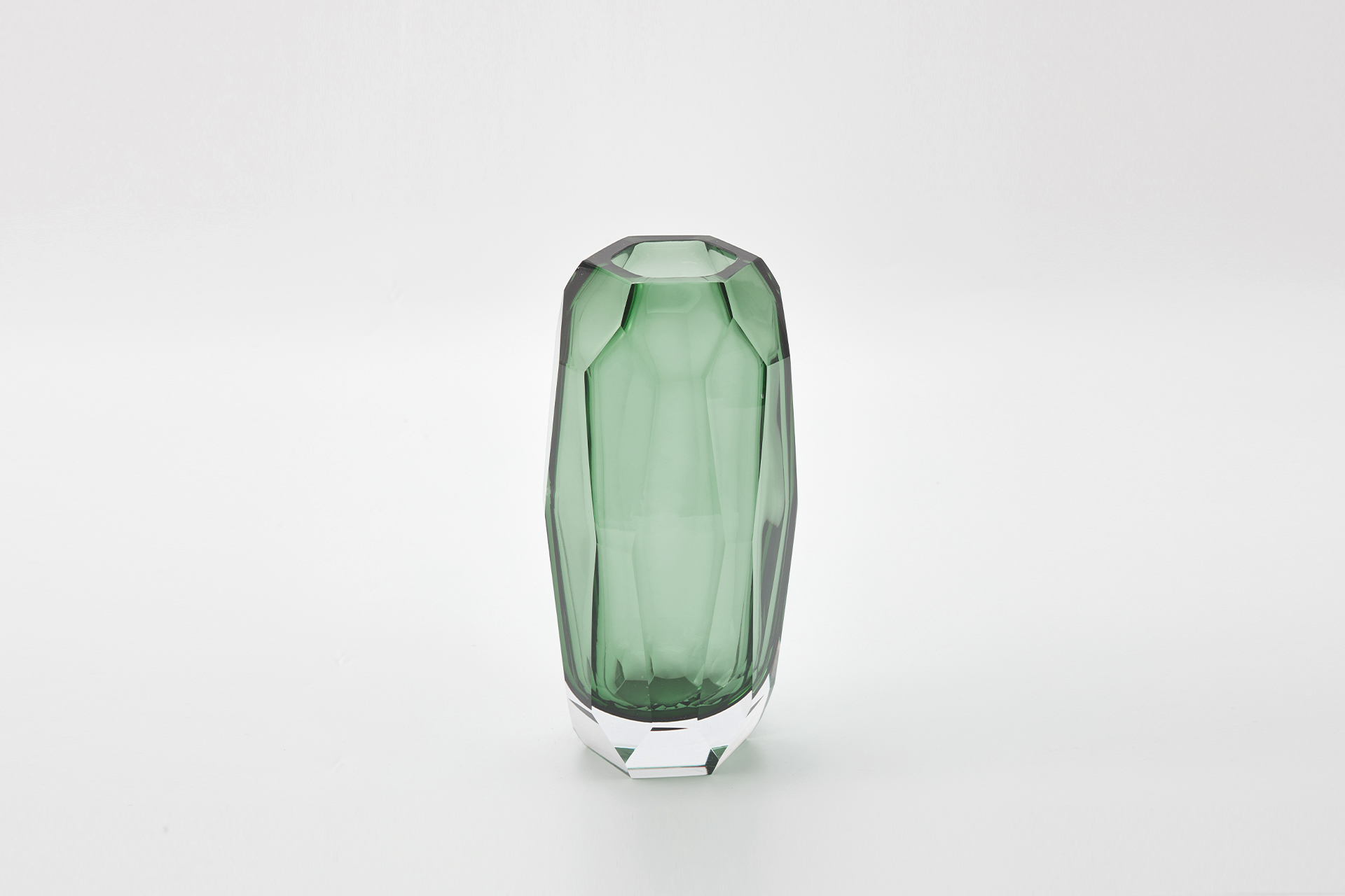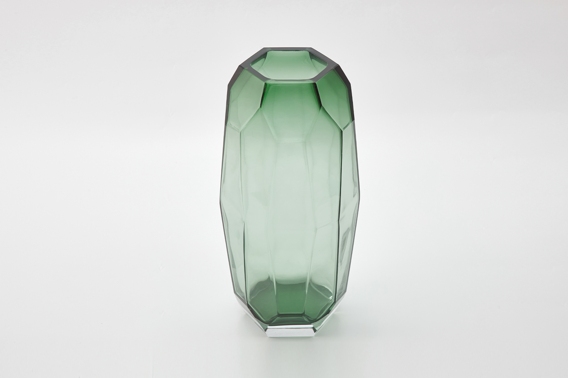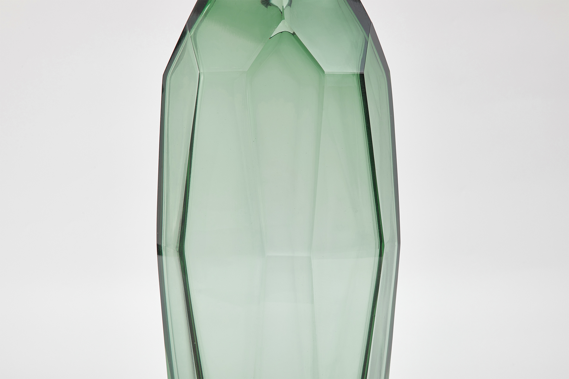 The multi-faceted dimensional characteristics of these hand blown, hand cut and polished sculptural vases are exquisite.