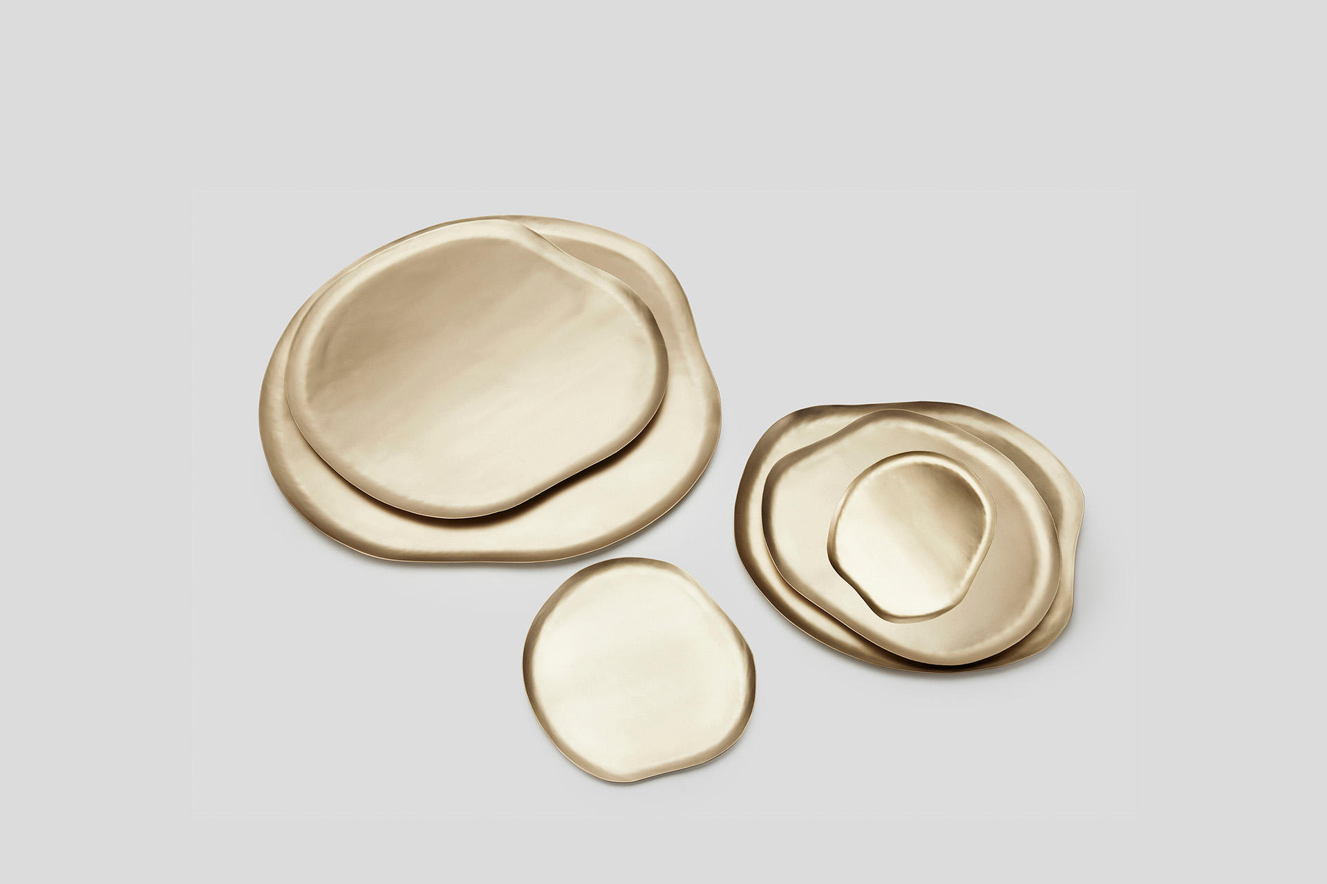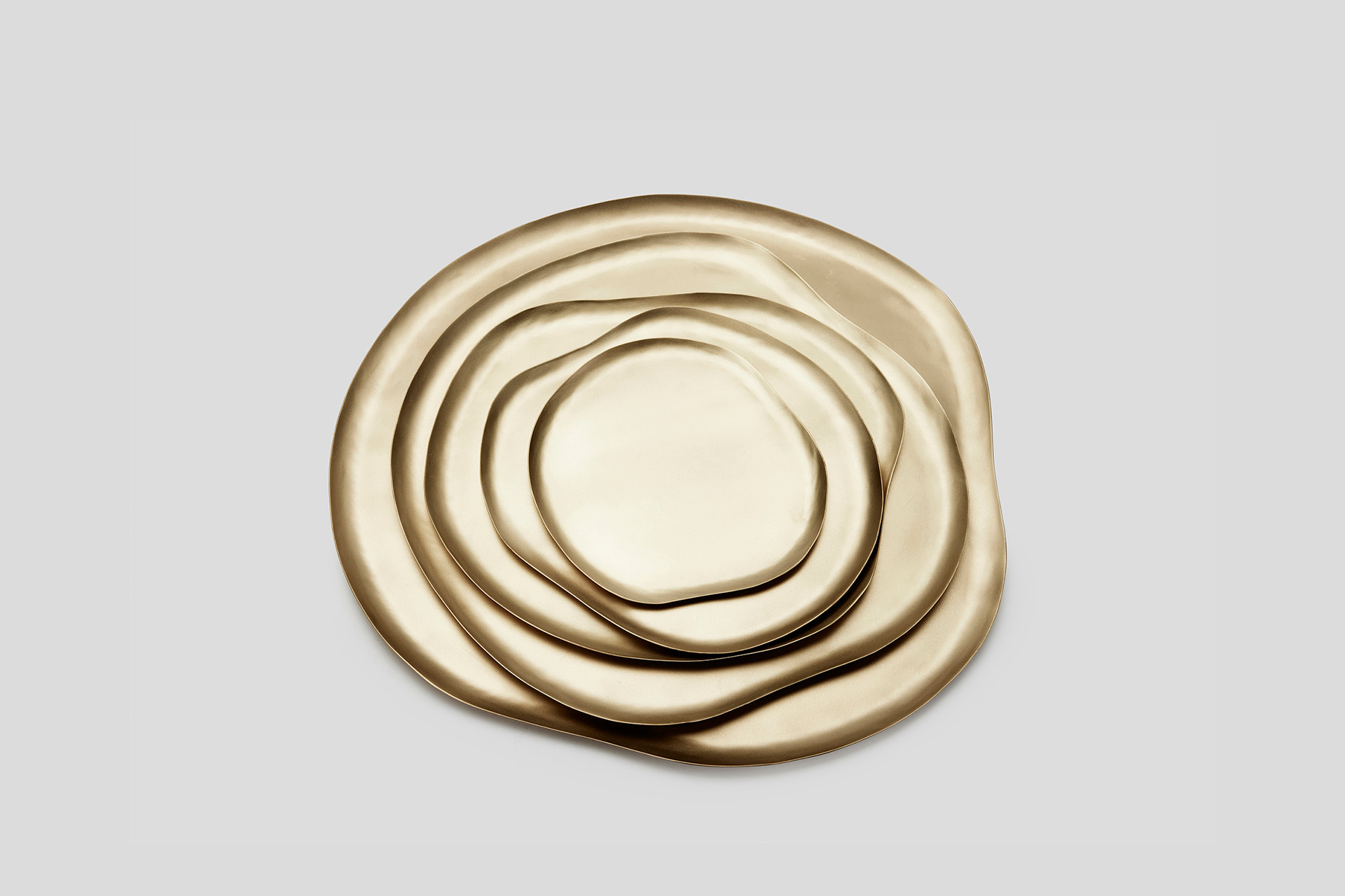 Each tray is lovingly hammered, shaped and polished by hand from a fine solid brass sheet, resulting in an airy delicate finish.